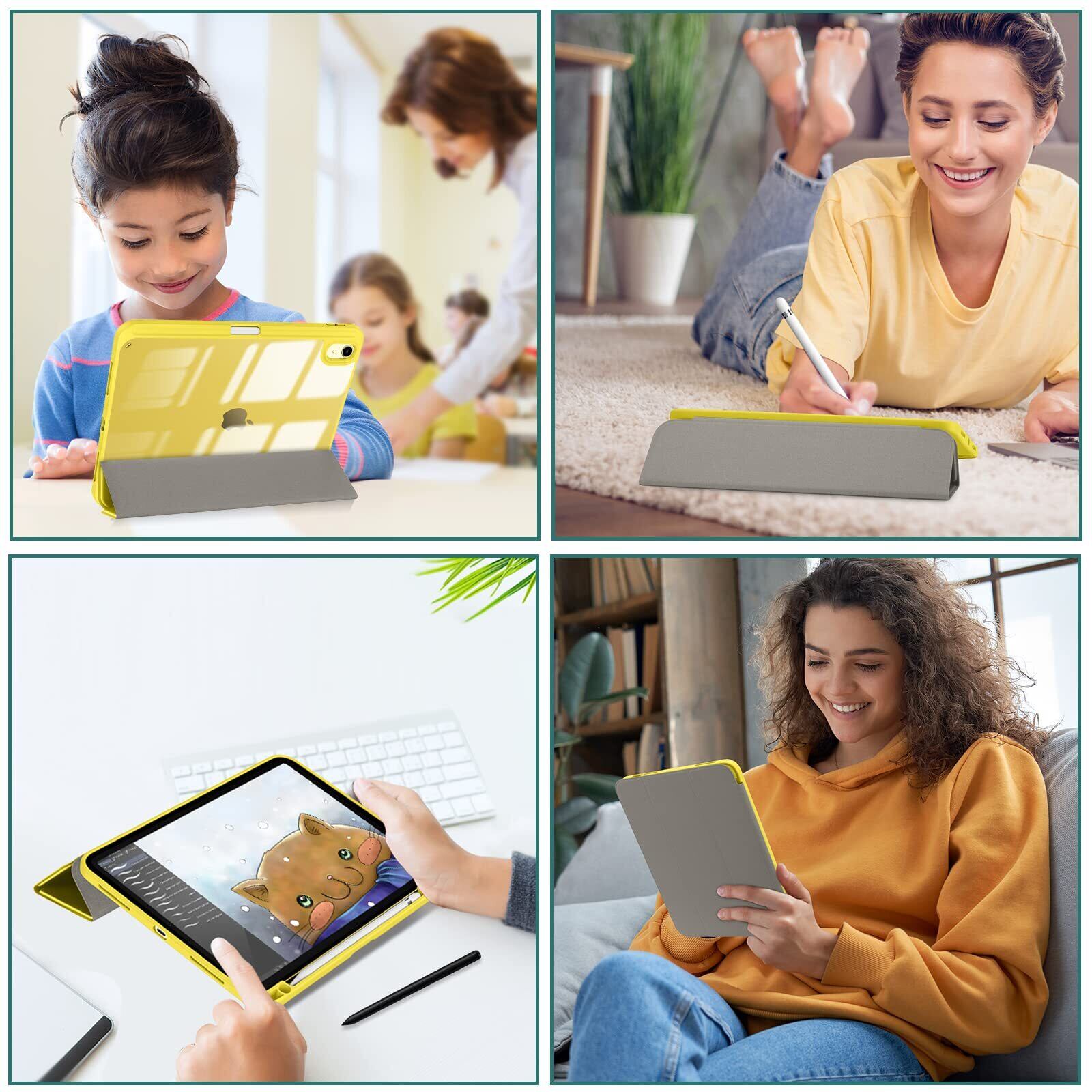 ProCase iPad 11世代/10世代 ケース iPad(A16)11インチ 2025/10.9インチ 2022通用 A2696 A2757 A2777 ペン収納 耐衝撃 三つ折り スタンド スマートカバー(イェロー)