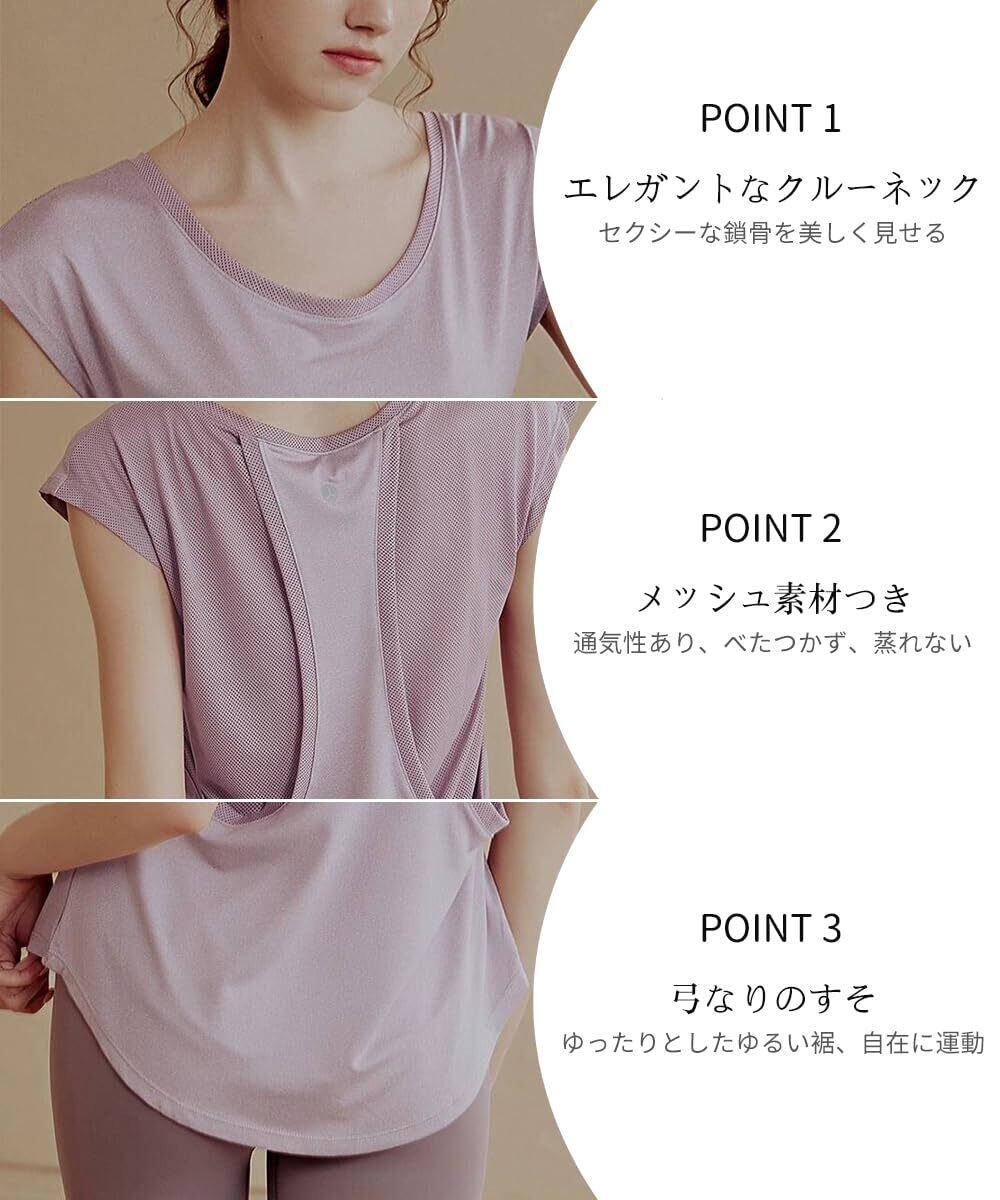[Karsaer] ヨガウェア レディース スポーツTシャツ ゆったり フィットネスウェア トップス ストレッチ 吸汗速乾 メッシュ通気 ピラティス 美シェイプ 丈長め ジムウェア ランニング A8150