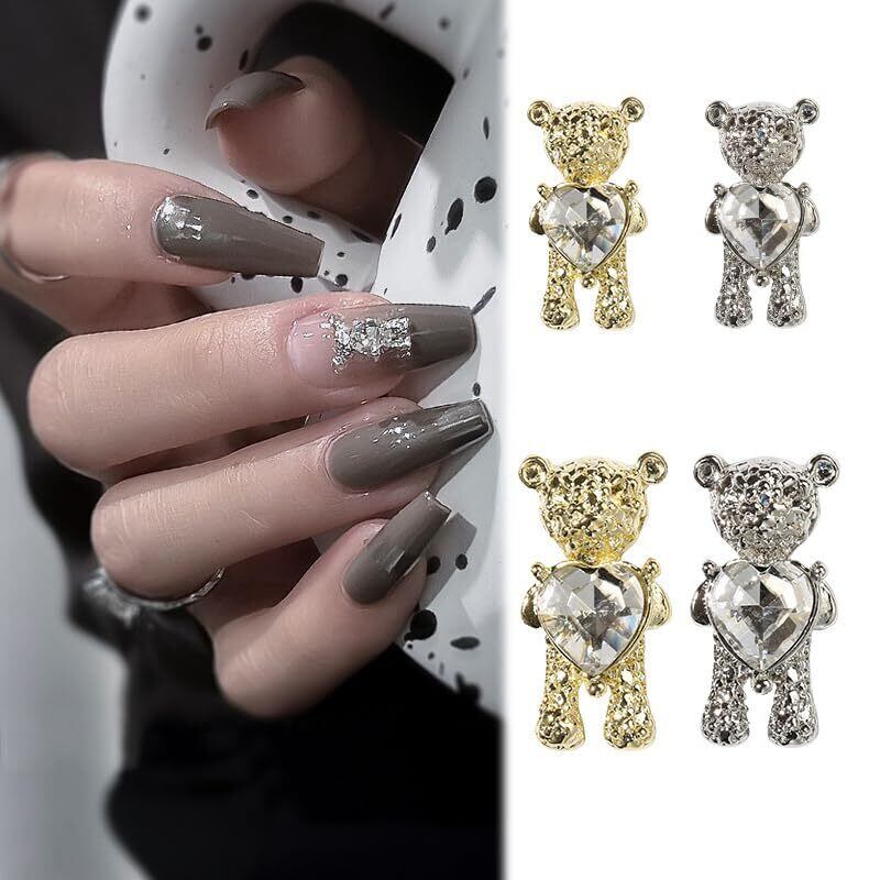 【AAGWW】ネイルパーツ ネイルグリッター クマ セット ネイルストーン 3D 立体的 合金 ラインストーン アクセサリー ジェルネイル ジュエリーパーツ(デザイン:くまのネイルアートアクセサリー,ゴールドの小熊*2、シルバーの小熊*2)