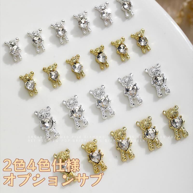 【デザイン】:くまのネイルアートアクセサリー 【サイズ】:大サイズ(7*15mm)、小サイズ(7*10mm) 【製品の内容】:ゴールドの小熊*2、シルバーの小熊*2