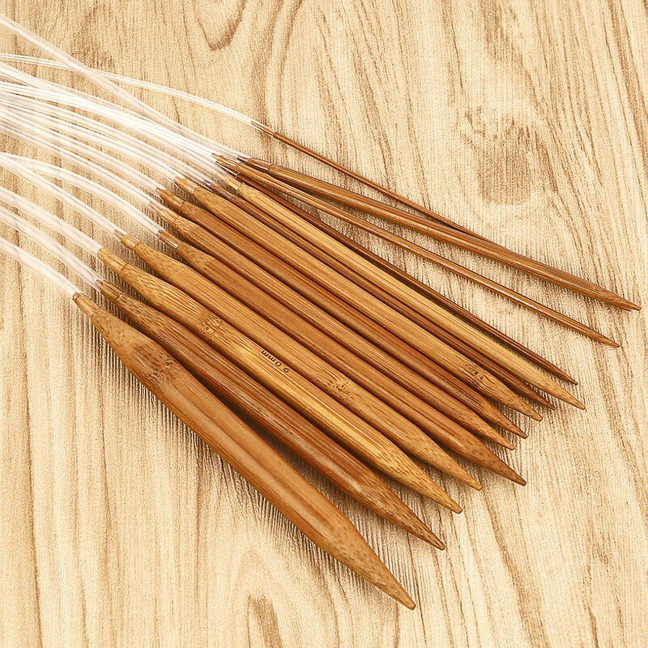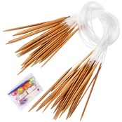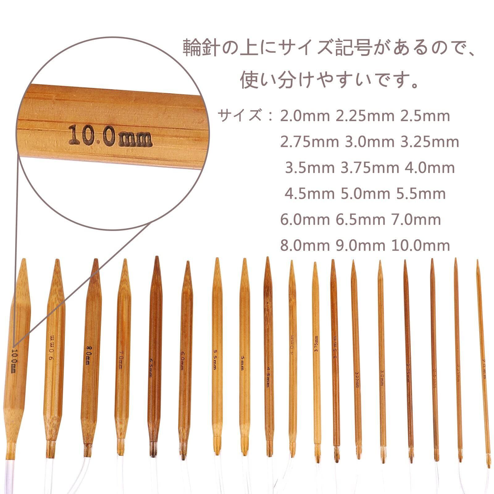 輪針セット 編み針 18本セット 炭化竹製棒針 2.0mmから10.0mm グッズ道具付き 編み棒 手あみ針 手芸道具 手編み道具 輪針 80cm