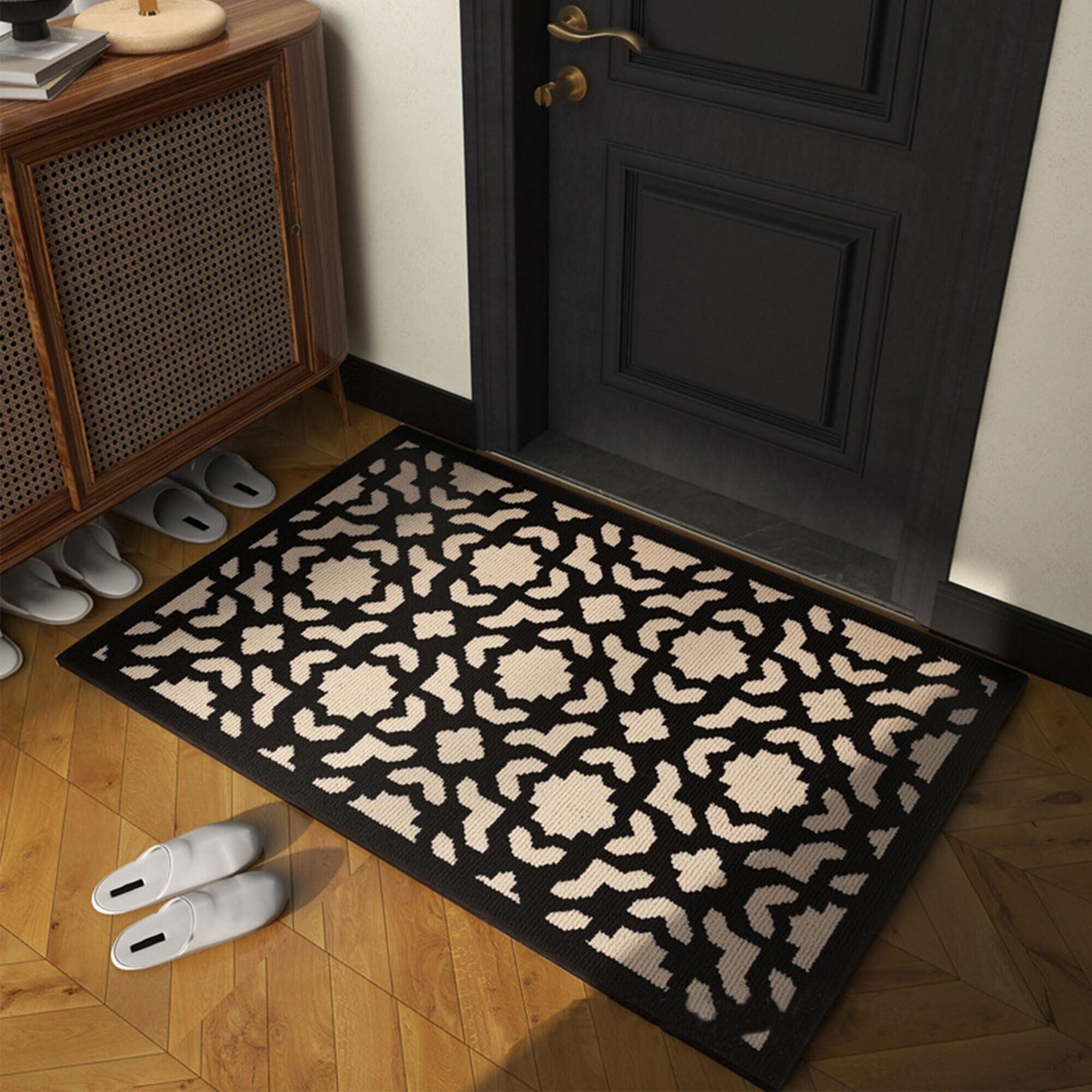 brontier 玄関マット 室内 おしゃれ 玄関マット 屋外 泥落とし 北欧 和モダン ドアマット 滑り止め 吸水 丸洗い 防音 家庭用 足ふきマット 床マット 業務用 大きめ 和風 洋風 耐摩耗 (80*120cm, TYPE-A)