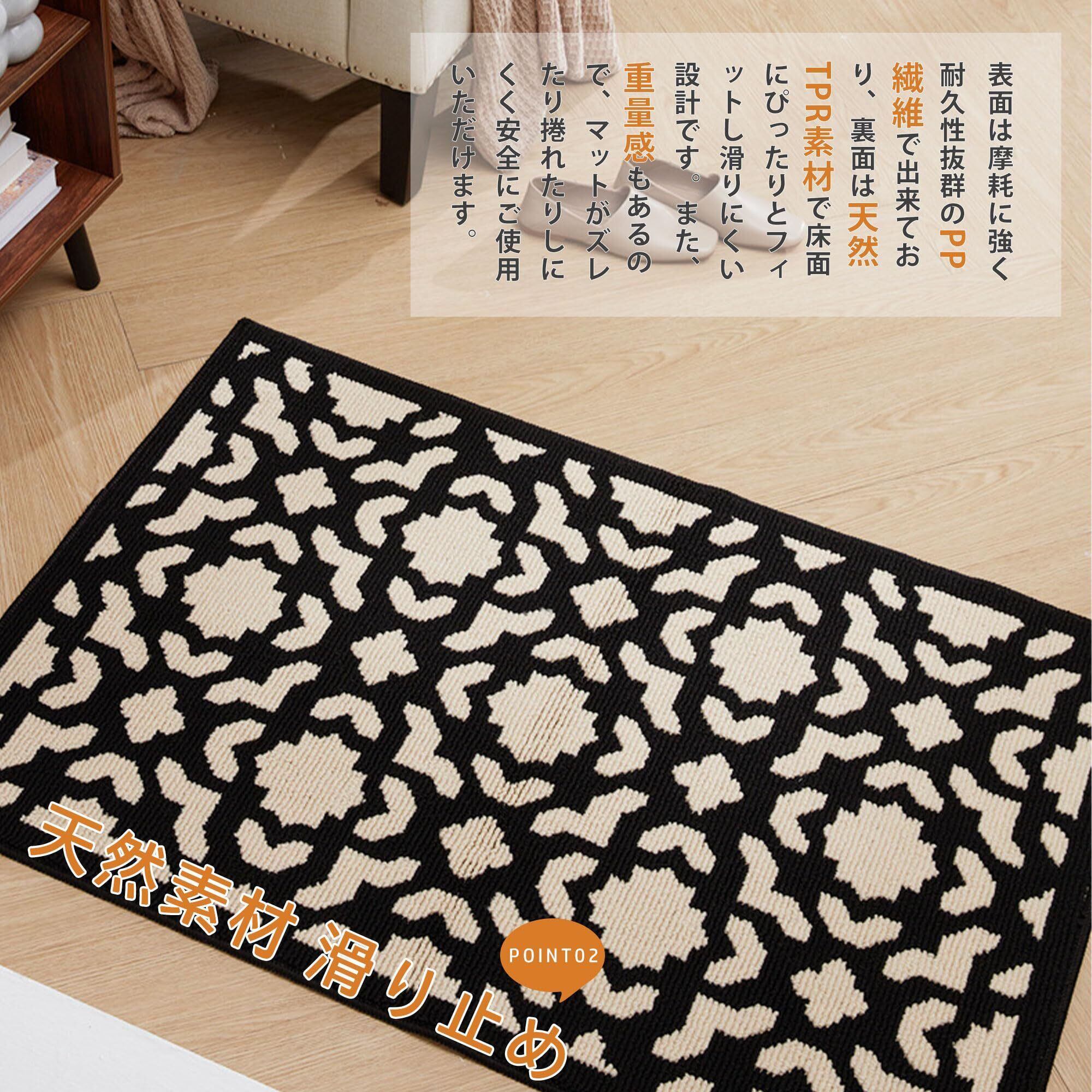 【耐久性・耐摩耗性 適度な厚さ】細かい縫い目きれいな編み方で作られており、優れた耐久性と耐摩耗性を持ちます。厚さ7mm、ドアを開く邪魔になりません。※厚いマットだとドアの開け閉めができなくなることもありますね。厚みは必ずチェックしましょう。50*80cm、60*90cm、80*100cm、80*120cmの4サイズから選べます