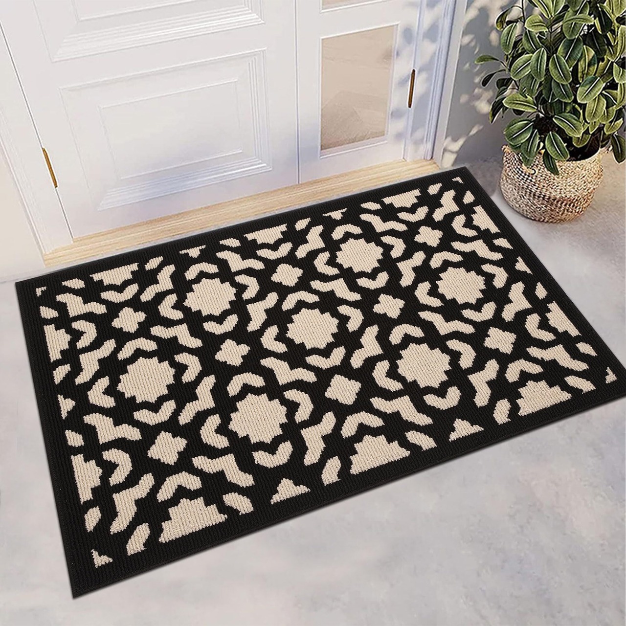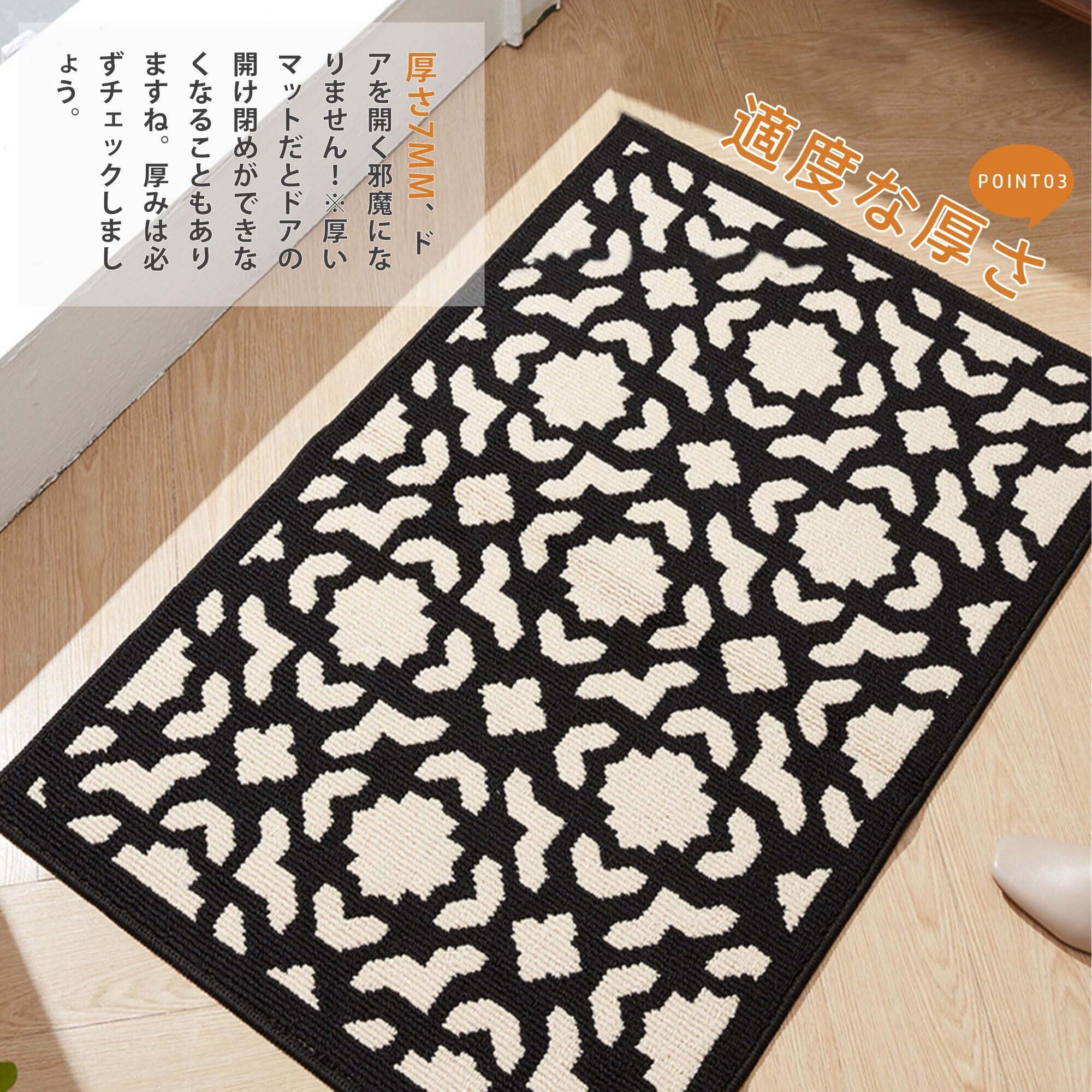 【オシャレなデザイン 和モダン・和風・洋風】落ち着いた黒白カラーかつ立体感のある花模様マットは和洋とわずお家をモダンな印象に仕上げてくれます。お家の玄関、台所、ドア、階段、エントランス、キッチン、洗面台、寝室、トイレなど様々な場合にお使い頂けます。新居での新しい生活をスタートさせた方に新築・引越しお祝いの気持ちが伝わるギフトとしても最適です