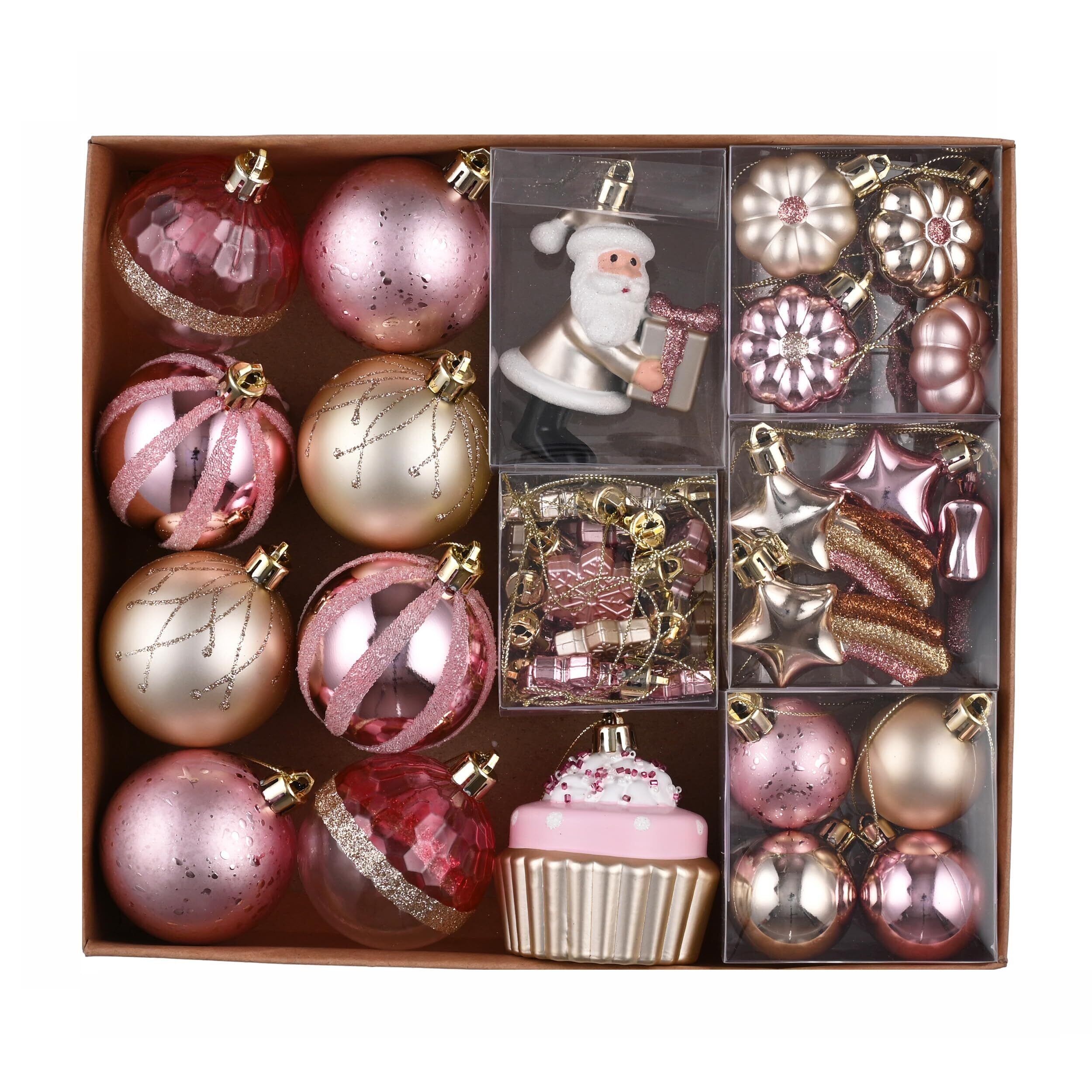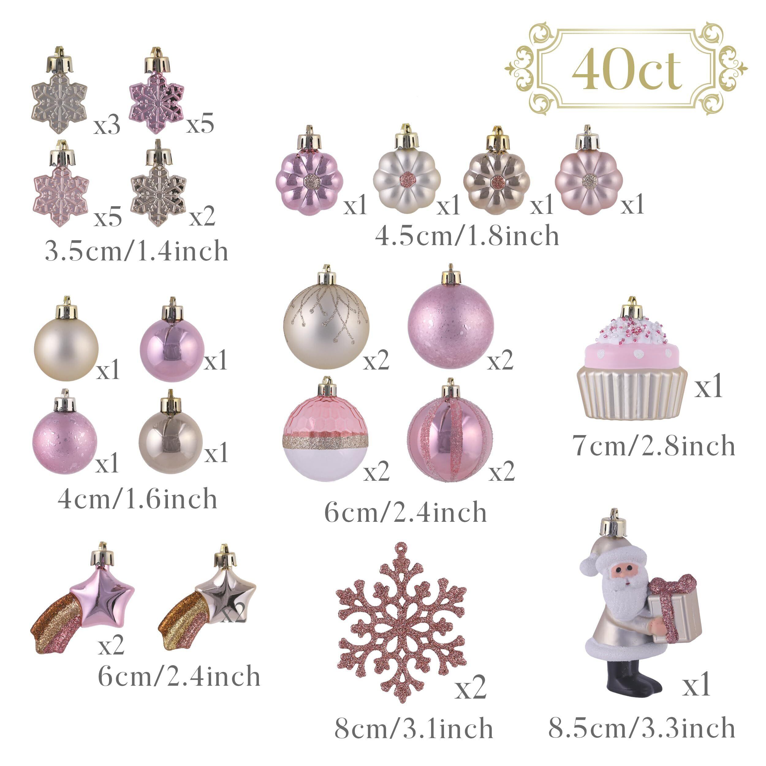 【パッケージとサイズ】クリスマスオーナメントセットには、ピンク・ゴールドのクリスマスボール40個が含まれています。各ボールはシームレス接続を採用し、洗練された外観を作り出しています。ボックスには高品質のエコボール箱を採用し、贅沢感を加えます。