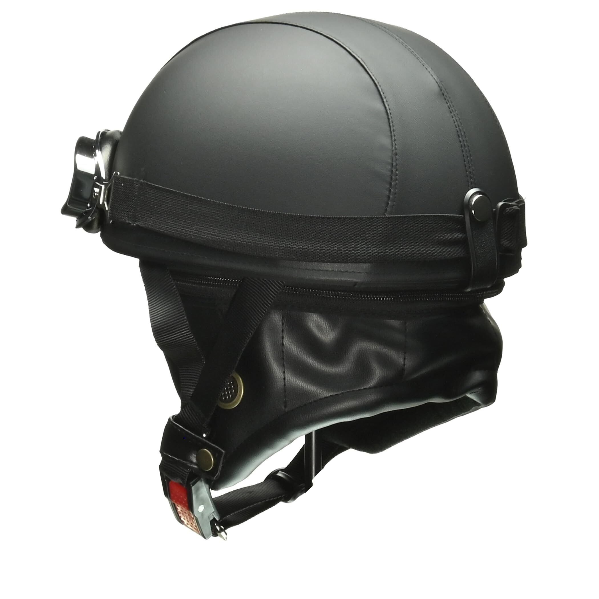 楕円型のビンテージゴーグルがセットになったイヤーカバー付ハーフヘルメット。