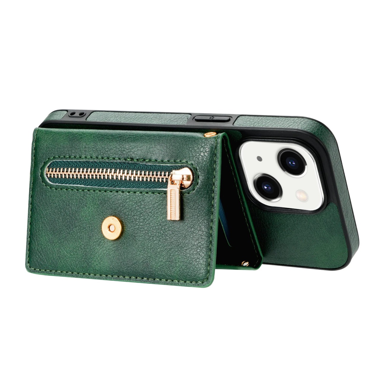 アイフォン 13 Mini ケース ショルダー クロスボディ手帳型 iPhone 13mini 縄掛けカバー 手帳 iphone13mini ケース CASE 長ストラップ 肩がけ 首掛け 斜め掛け チェーン ファスナー型 携帯カバー 5色 グリーン