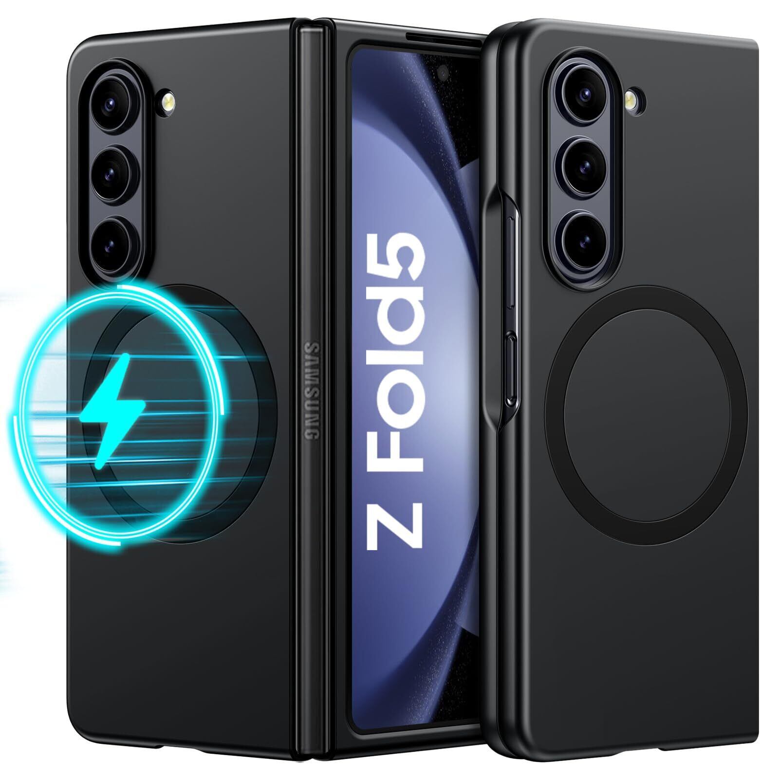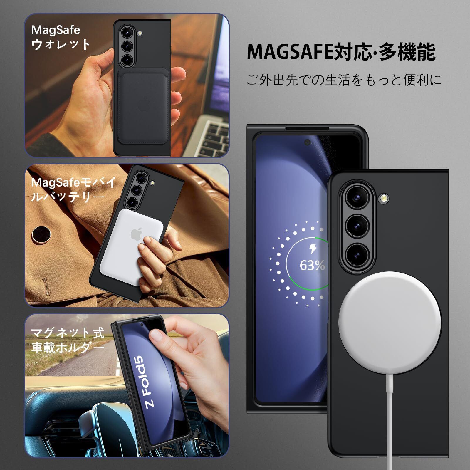 DOMAVER Samsung Galaxy Z Fold5 5G 用 ケース Magsafe対応 ワイヤレス対応 傷に強い背面 滑り止め 黄ばみなし ストラップホール付き 画面レンズ保護 指紋防止 耐衝撃 7.6インチ ギャラクシーゼットフォールド5ケース 用カバー ブラック