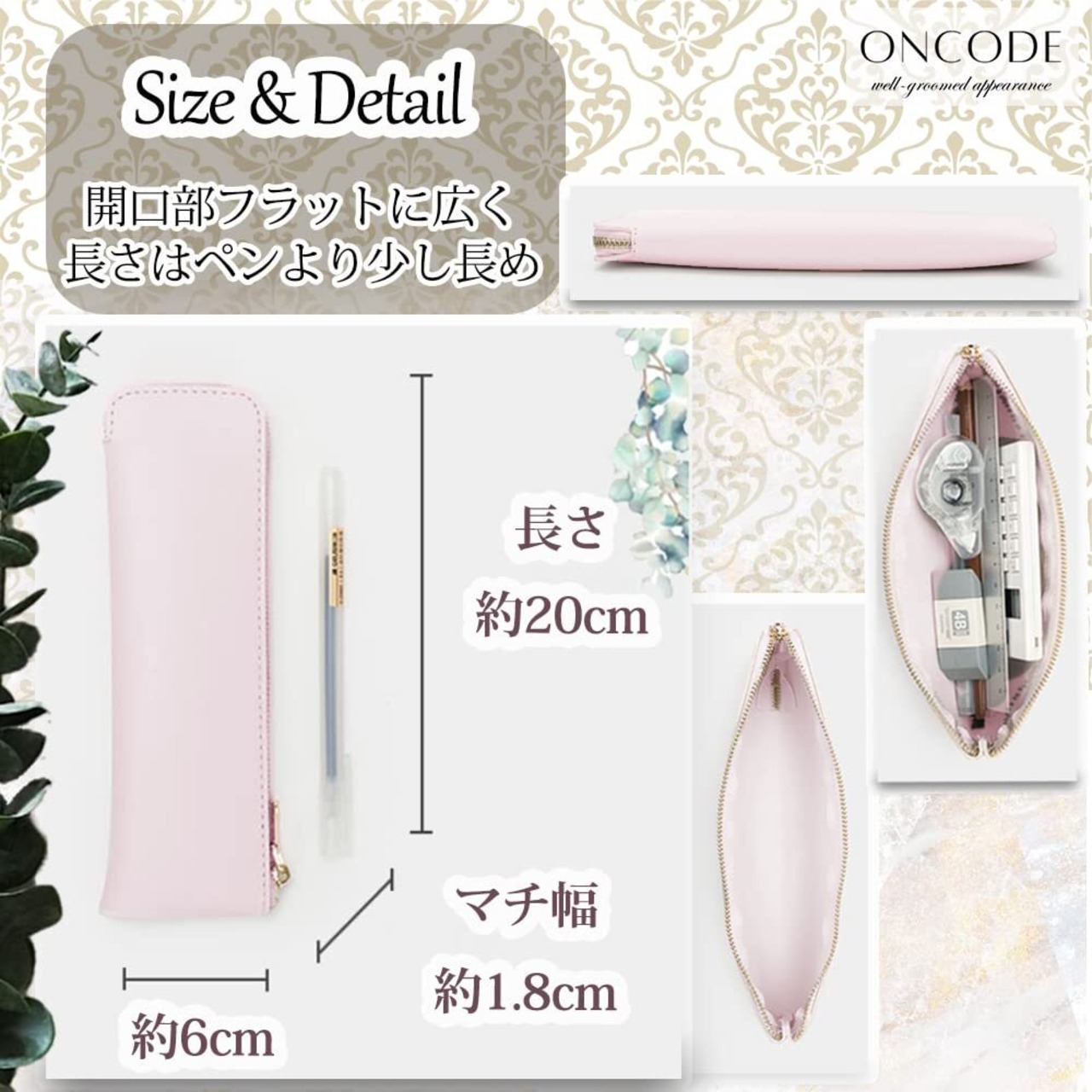 ONCODE ペンケース PUレザー調 おしゃれ 大人女子 筆箱 シンプル スリム 平らタイプ (ラテブラウン)
