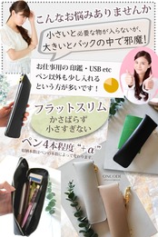 ◎スリムなタイプの中では幅広!ペン4本前後、長さはペンより少し長いのでペン以外にもお仕事に使うUSBや印鑑などちょっとしたものも持ち歩けます(収納容量はペンのタイプによります)!