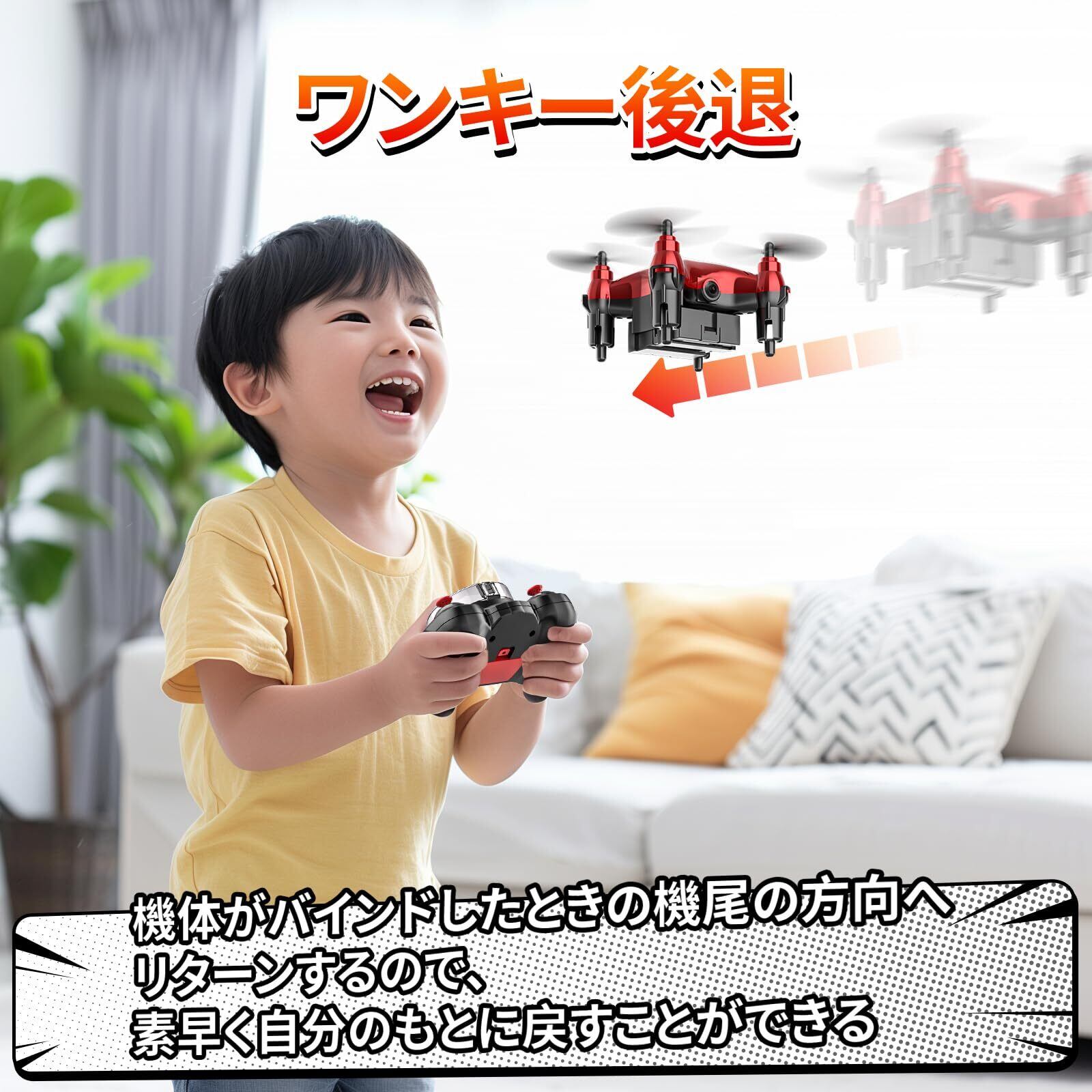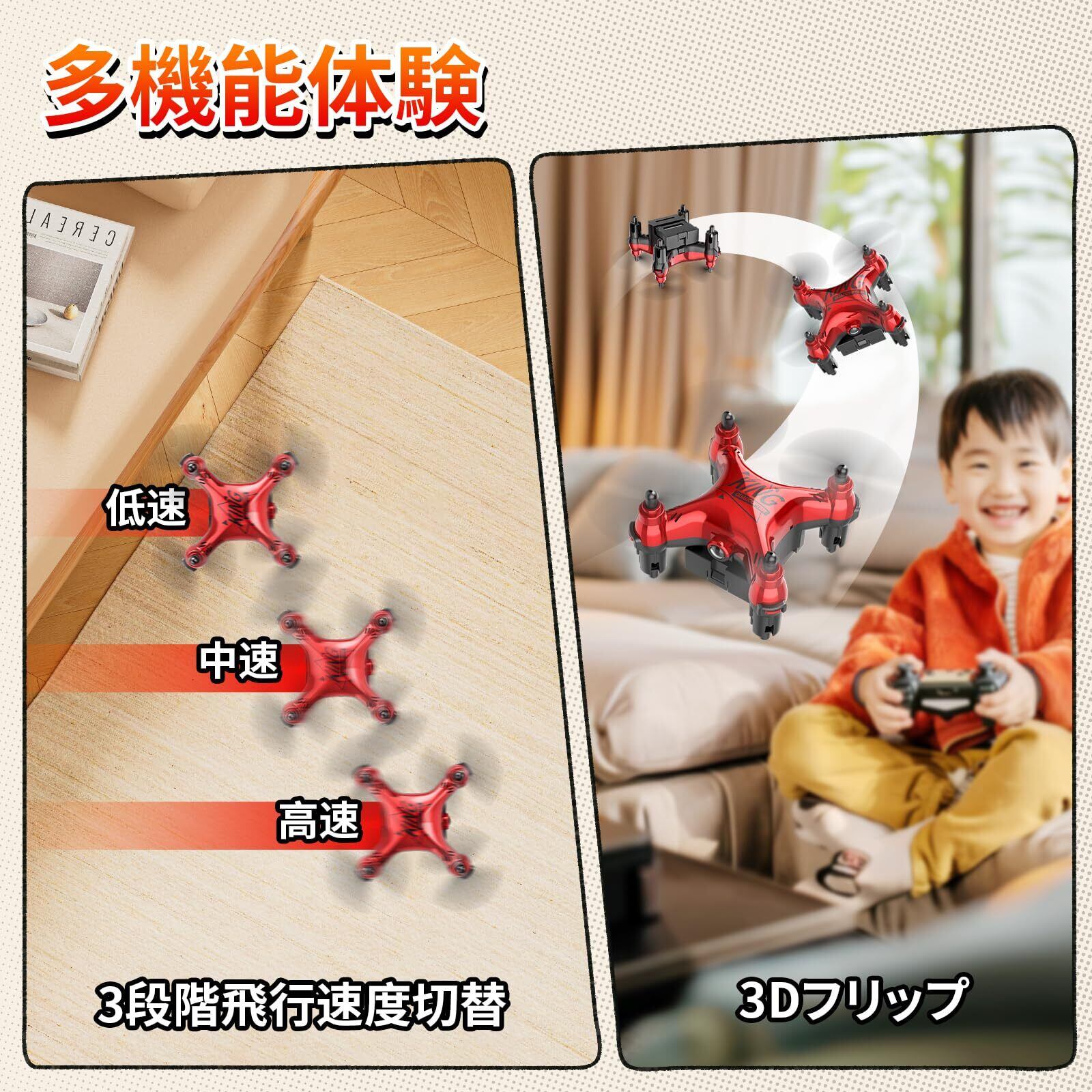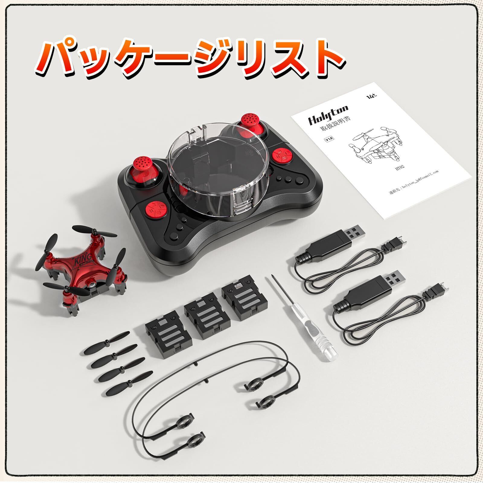 ドローン 100g未満 こども向け Holyton ミニドローン バッテリー3個 飛行時間24分 プロペラガード付き 小型 室内 初心者向け 高度維持 ヘッドレスモード ワンキー後退 プレゼント 子供 国内認証済み 2.4GHz 誕生日ギフト HT02 (緋) アップグレード