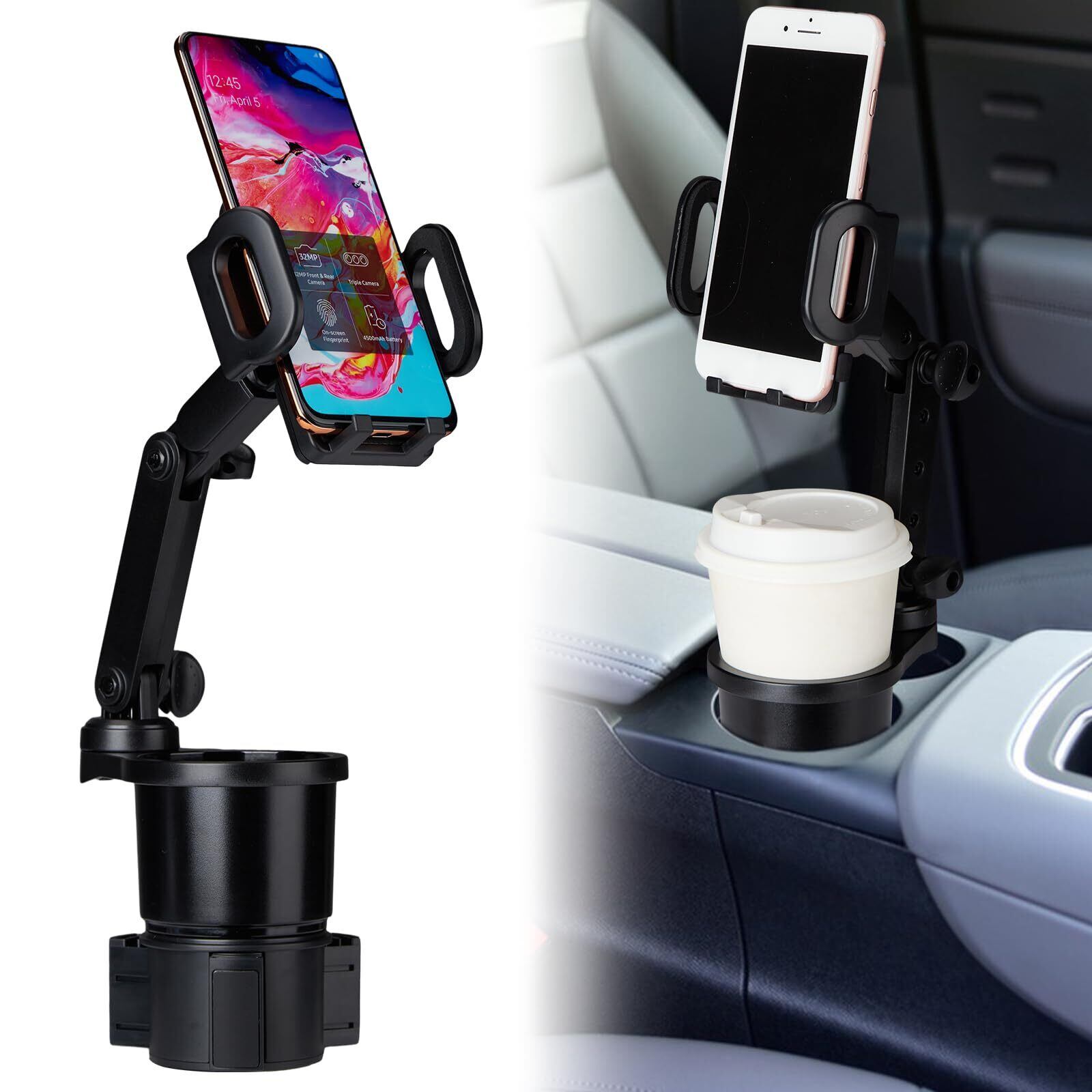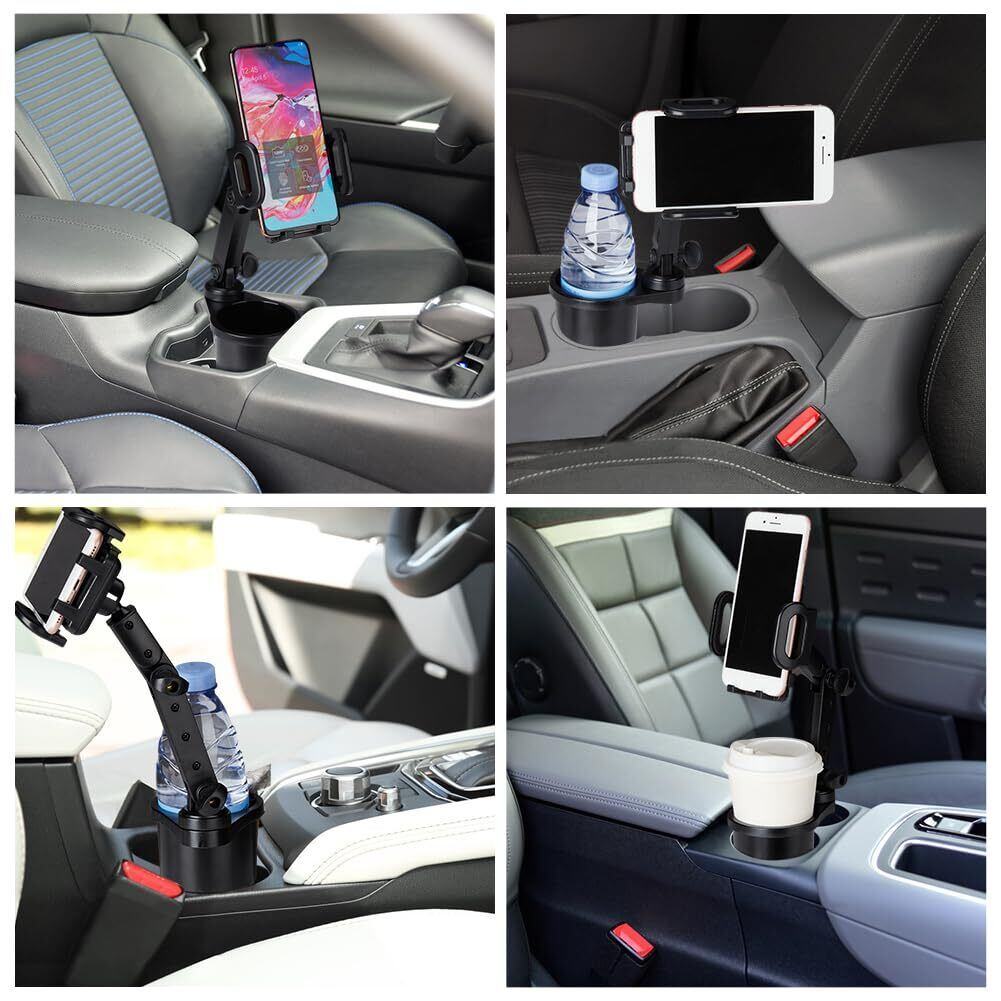 ダブルカップホルダーエキスパンダー: 2 in 1 車用カップホルダーエキスパンダーと車用カップフォンホルダーは、ユーザーが使用できる車内の収納スペースを満たします。 最大12~40オンス、幅3.78インチの大きなボトルと飲み物。