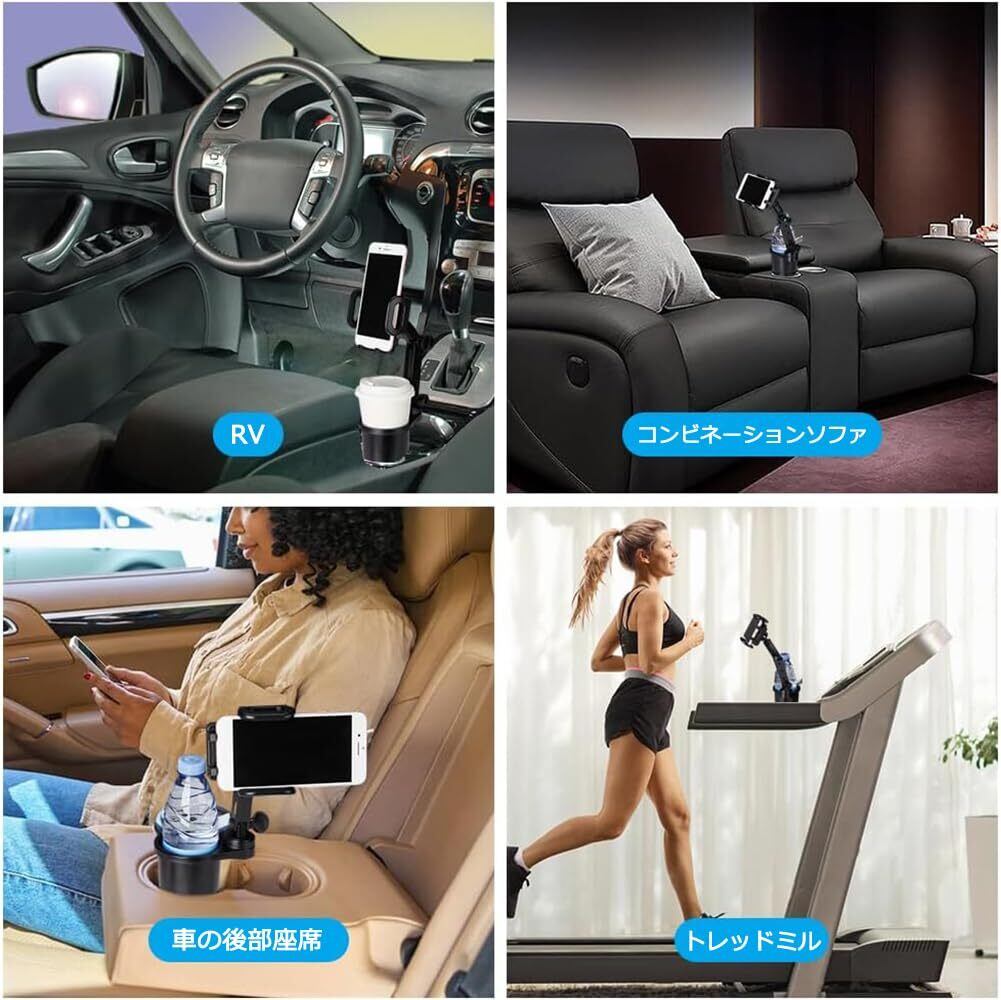 スマホホルダー 車用カップ ドリンクホルダー カップスタンド 360度 回転 カップホルダー付き携帯電話ホルダー マウント 携帯電話スタンド iPhone/Android スマートフォン用