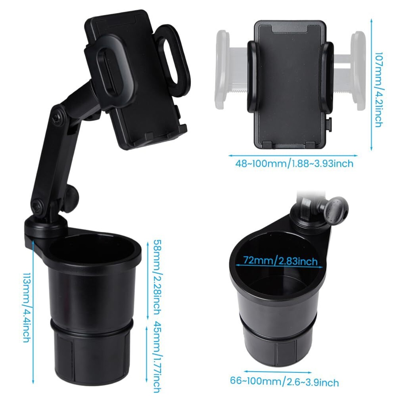 車種に適しています:カップホルダーは73mm以下のサイズに適しており、電話ケースは幅48〜100mmに適しています。