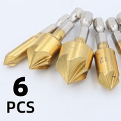 皿取り錐ドリル 皿取りビット ドリル刃 面取りビット 6~19mm 座グリビット ぐり HSS鋼 六角軸 ドリルビット 穴あけ工具 下穴錐 面取りカッター チタンコーティング 電動ドリルセット 5枚刃(6本セット)