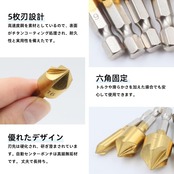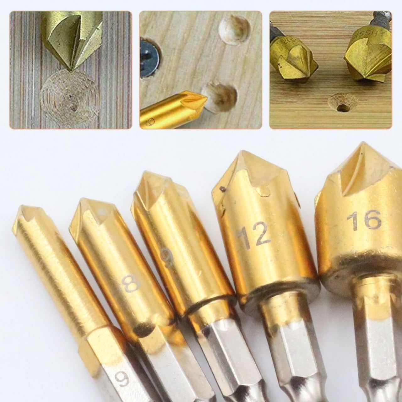 皿取り錐ドリル 皿取りビット ドリル刃 面取りビット 6~19mm 座グリビット ぐり HSS鋼 六角軸 ドリルビット 穴あけ工具 下穴錐 面取りカッター チタンコーティング 電動ドリルセット 5枚刃(6本セット) | yankees