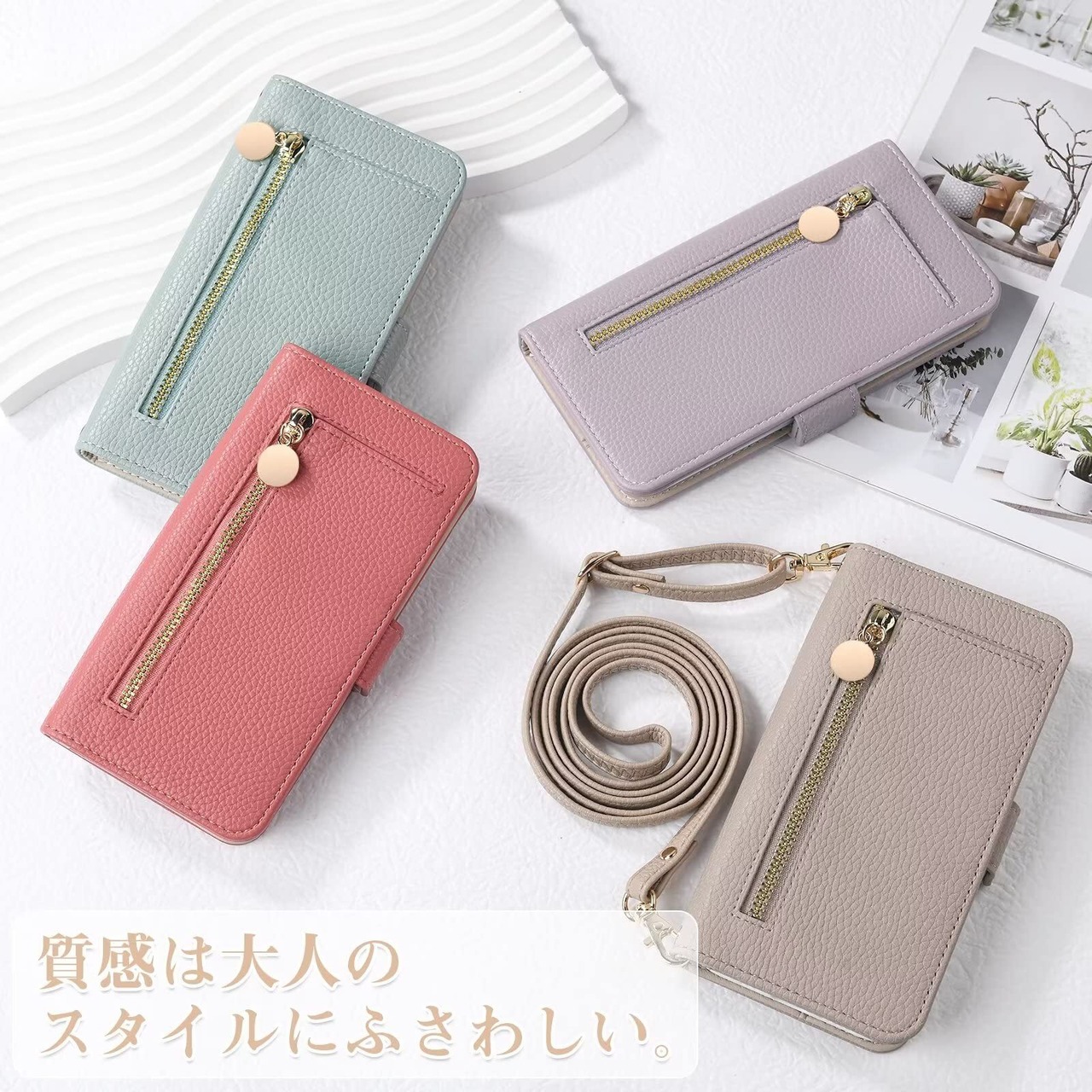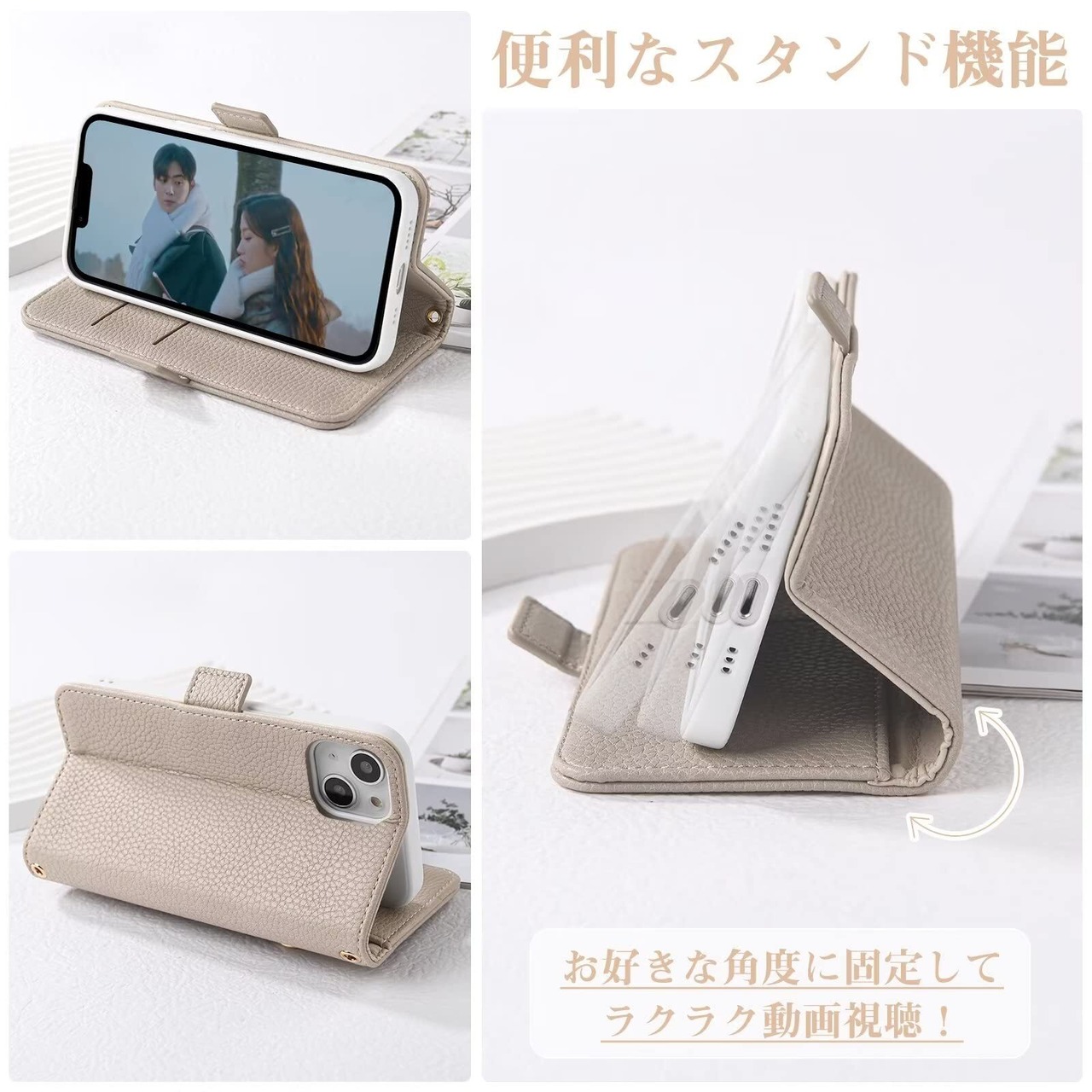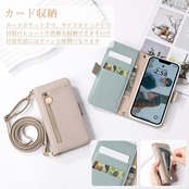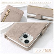 【収納スペース&スタンド機能】1.カード入は内側にあるだけではなく、ケースの表にもファスナーポケット1つ付きます。駐車券や名刺、お札、コインなどを収納でき、L型デザインは薄くて、物の収納ももっと便利になります。金属製のファスナーは長持ちでき、ゴールドとレザーケースの合わせはおしゃれ。2.スタンド機能:裏面を折り曲げれば横置きのスタンドに変われます。動画を心地良い角度で楽しめます。