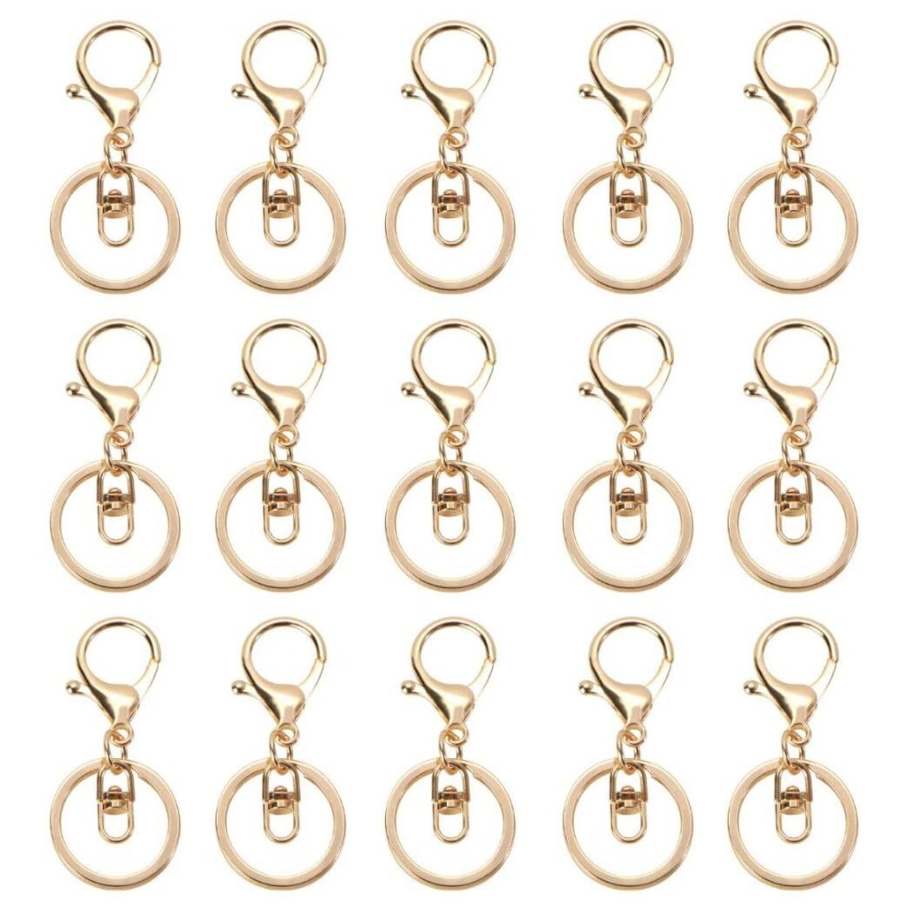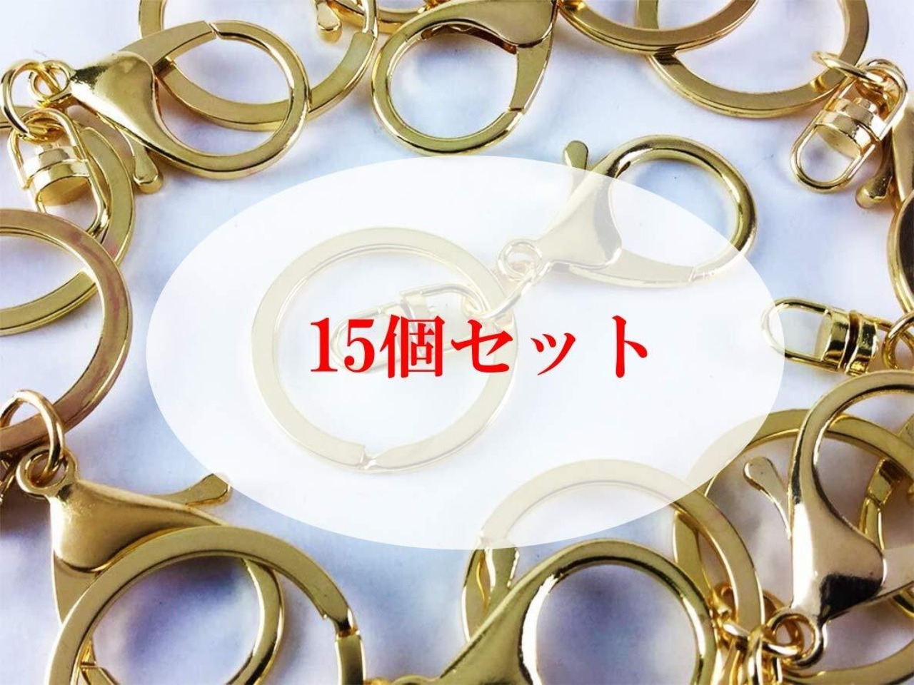 HappyHome ナスカン ゴールド 15個セット アクセサリーパーツ キーホルダー金具 キーリング 回転フック付き (ゴールド)