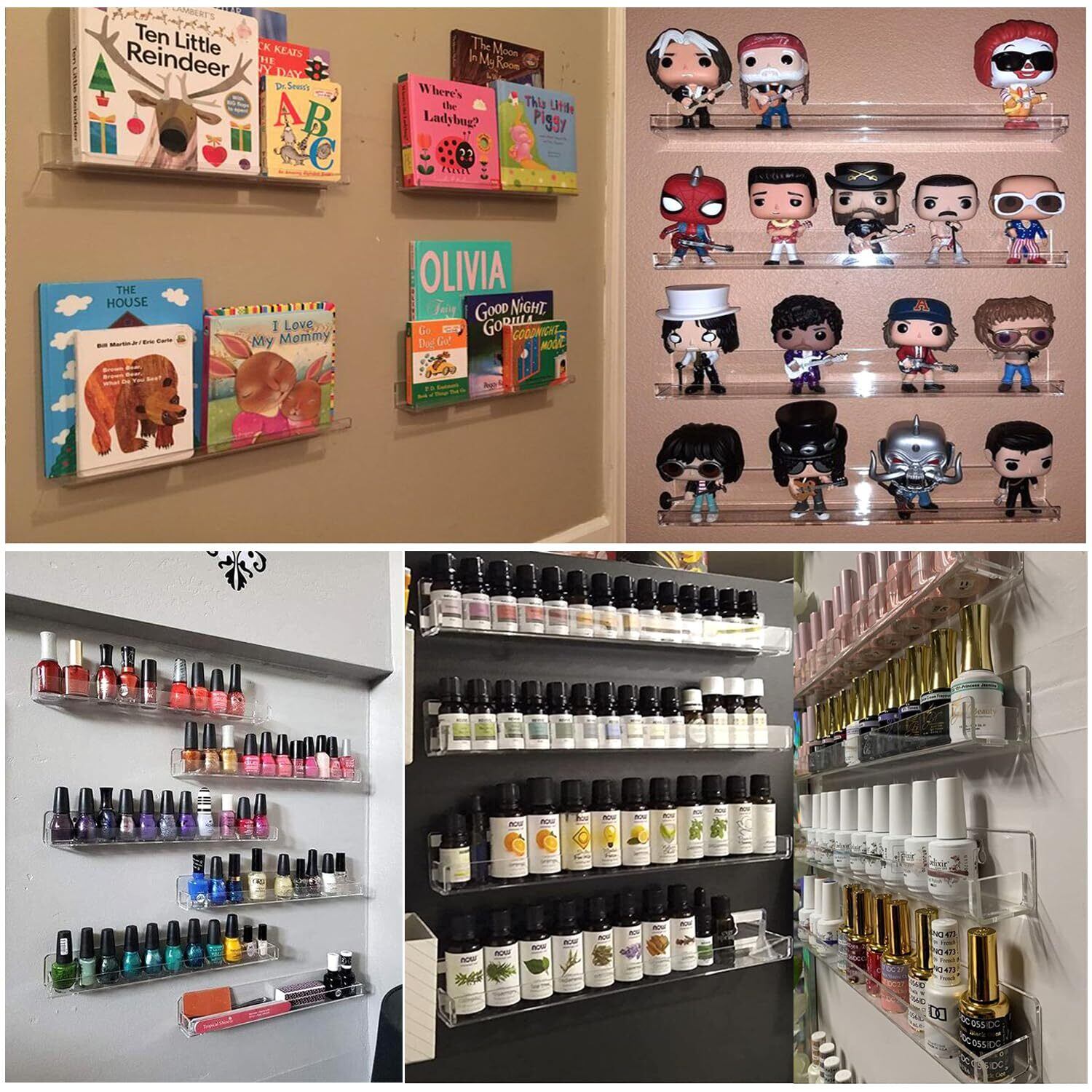 ウォールシェルフ 6個セット マニキュア収納ラック ネイルカラー収納 大容量 透明アクリル 強い耐久性 壁掛け U型棚 ネジで取付