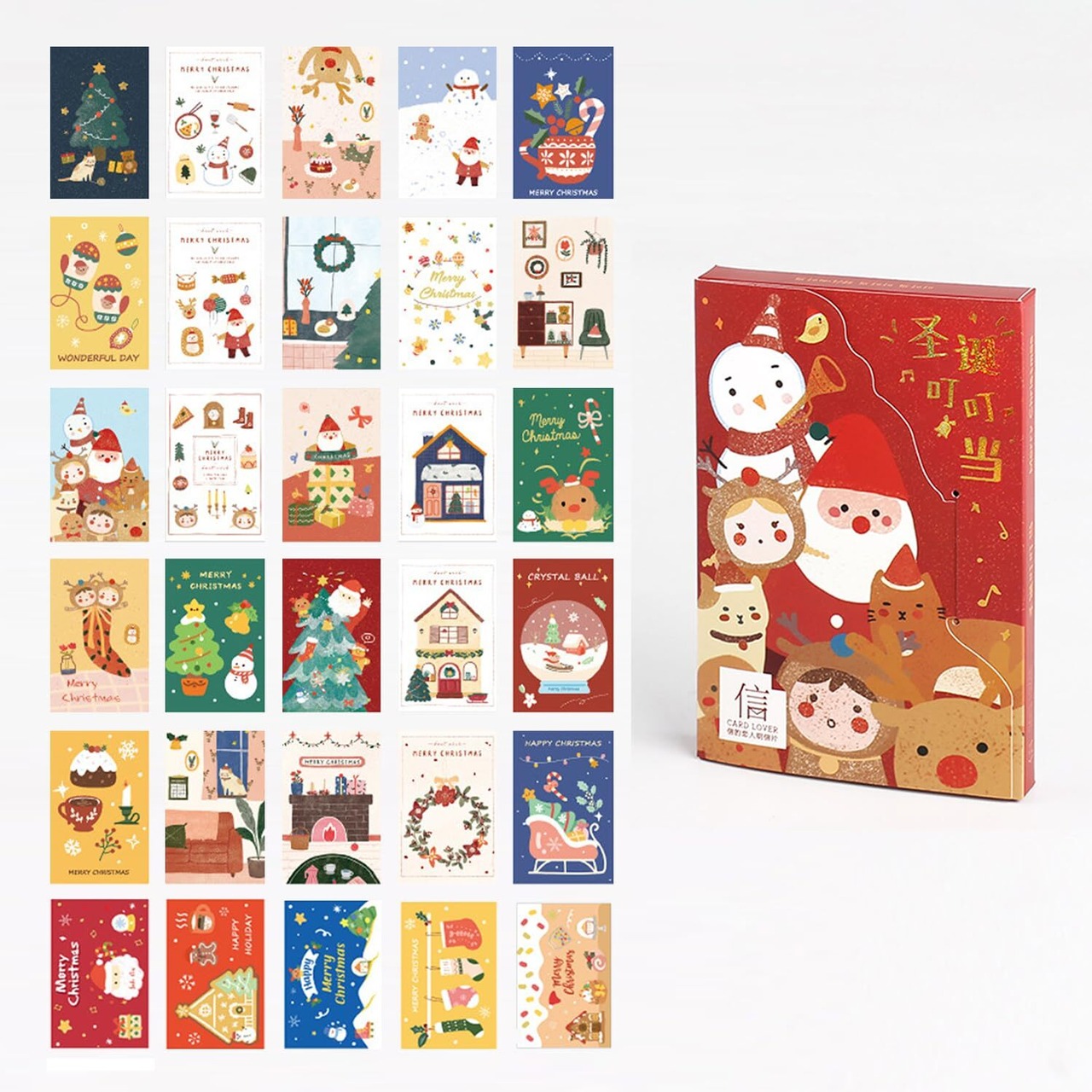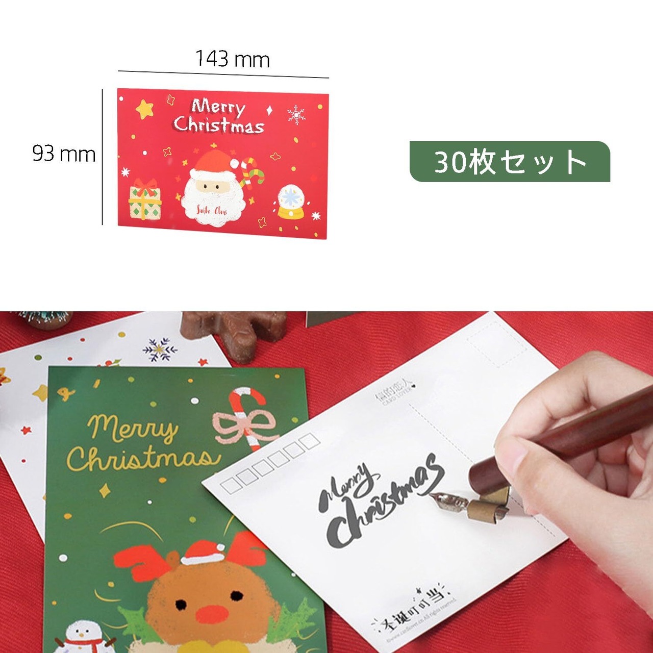 メッセージカード クリスマス Message card 30枚セット かわいい クリスマスイラストはがきセット christmas感謝カード 葉書 クリスマス ポストカードセット