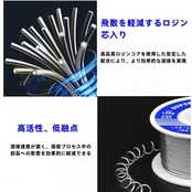 【商品内容】ワイヤーはんだ*1巻。 線径:0.8mm。 重量: 100g。 融点:183~245℃。 用途:精密回路、電気機器の配線、接続。