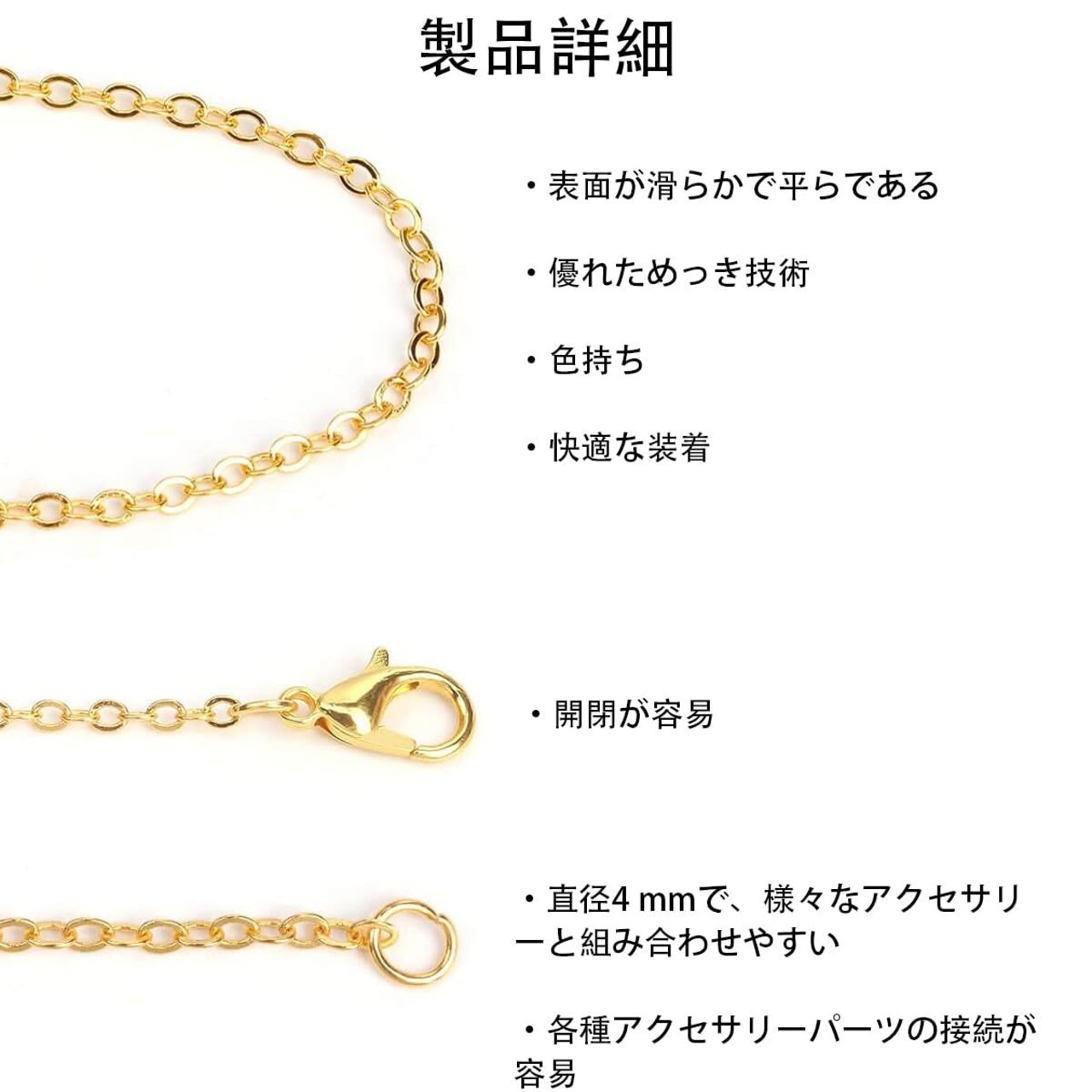 【広範な応用】:ブレスレット、ペンダント、イヤリング、ネックレス交換、DIYアクセサリー製作、手芸品延長、修理などに適用する。