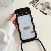 Google Pixel 8A かわいい クリアケース 波状フレームクリア ストラップ ショルダー 耐衝撃 グーグル ピクセル8A 6.1インチカバー 肩掛け 斜めかけ 縄掛けケース【長さ調整可能ブラック縄掛け付き】ウェーブ デザイン スマホカバー 韓国 可愛い 女子向け 人気 落下防止 紐付き 織りスト ネックストラップ ショルダー (Pixel 8A-ブラック) | yankees