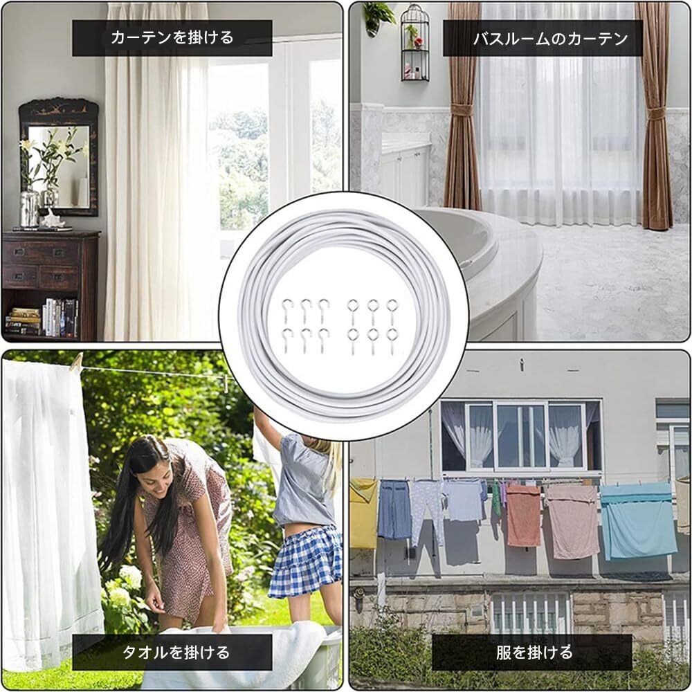 カーテン ワイヤー ロープ レール 5m カーテン レール ロープ ワイヤー 吊り下げ 取付簡単 DIY フック付き ホワイト