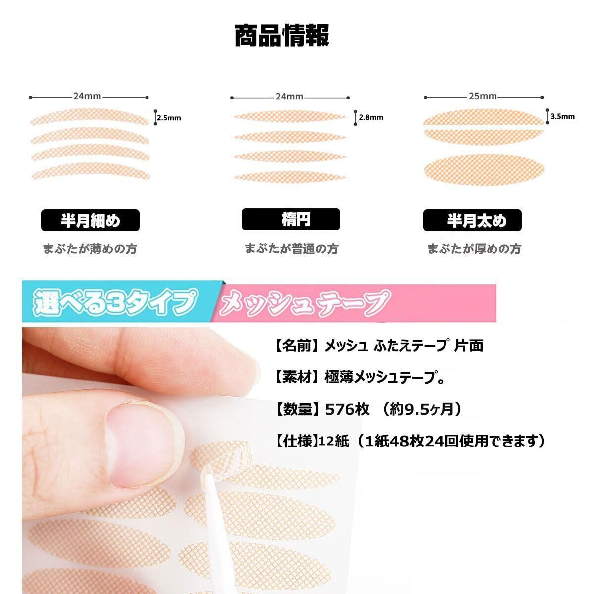 まぶたテープ メッシュ 576枚 Yesmart 片面 強力 二重テープ 二重 極細 肌色 ふたえテープ 二重テープ 目立たない メッシュテープ 3type Yes100 (【半月太め】) | yankees