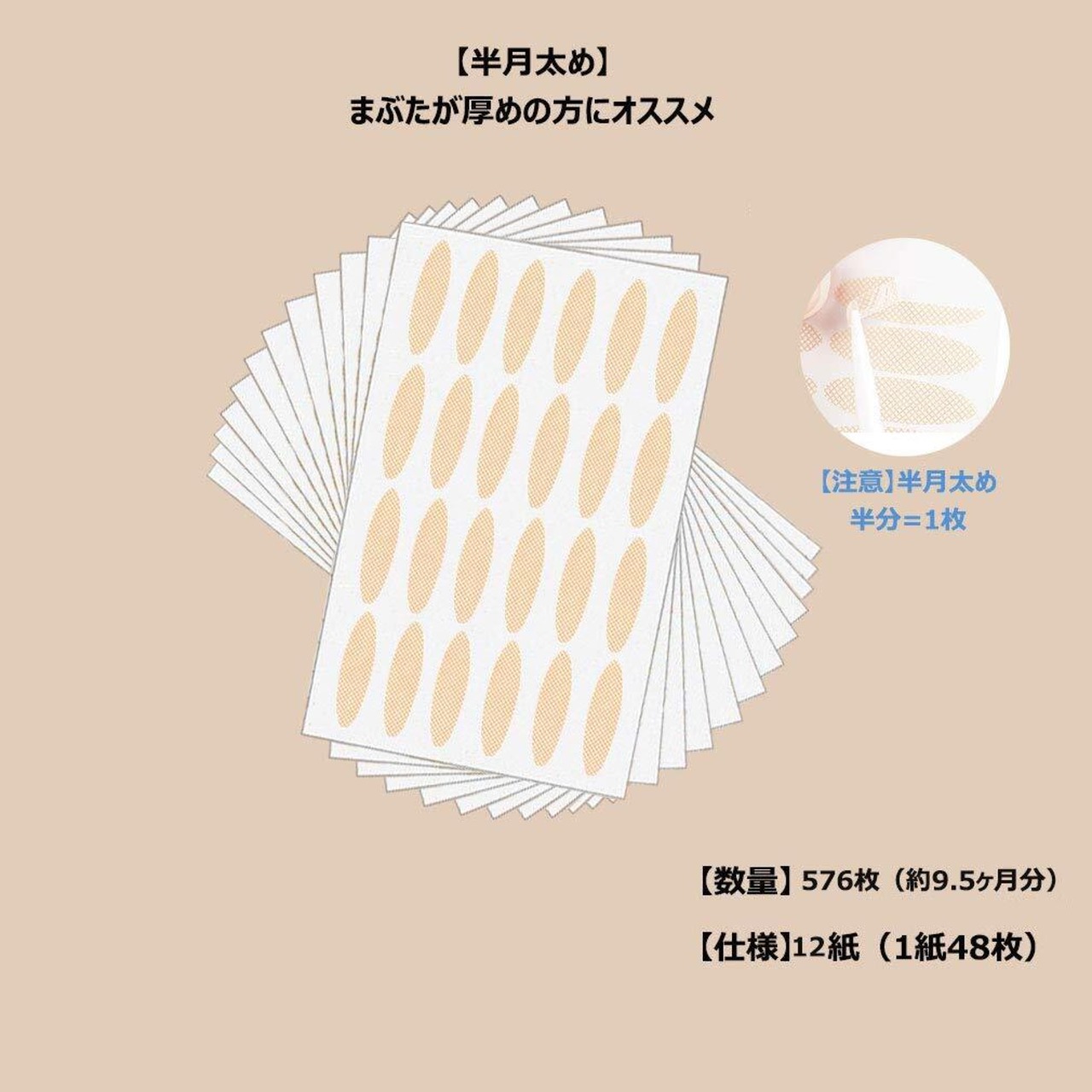【半月太め】まぶたが厚めの方にオススメ【半月細め】まぶたが薄めの方にオススメ【楕円】まぶたの厚みが普通の方にオススメ。