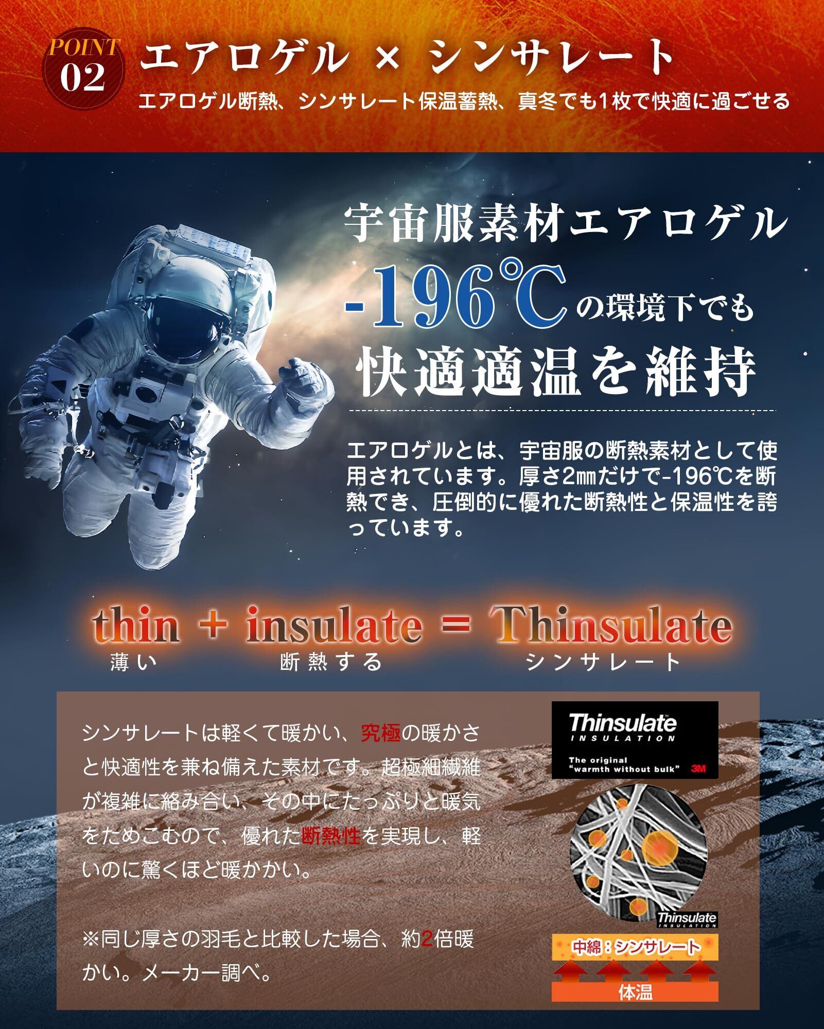 【LockHeat速暖発熱繊維】LockHeatはVK Living独自開発し、すばやくあたたまる、1秒で速暖の発熱保温繊維。発熱効率が普通のポリエステルより198%上がり、特別な螺旋状で、しっかり熱をキャッチし逃がさない。暖かさに包まれて暖眠でき、朝まで暖かくぐっすりできます。【アルミシート保温断熱】当社独自な技術で、ガサガサ音しないアルミシートを使用して、断熱性に優れています。