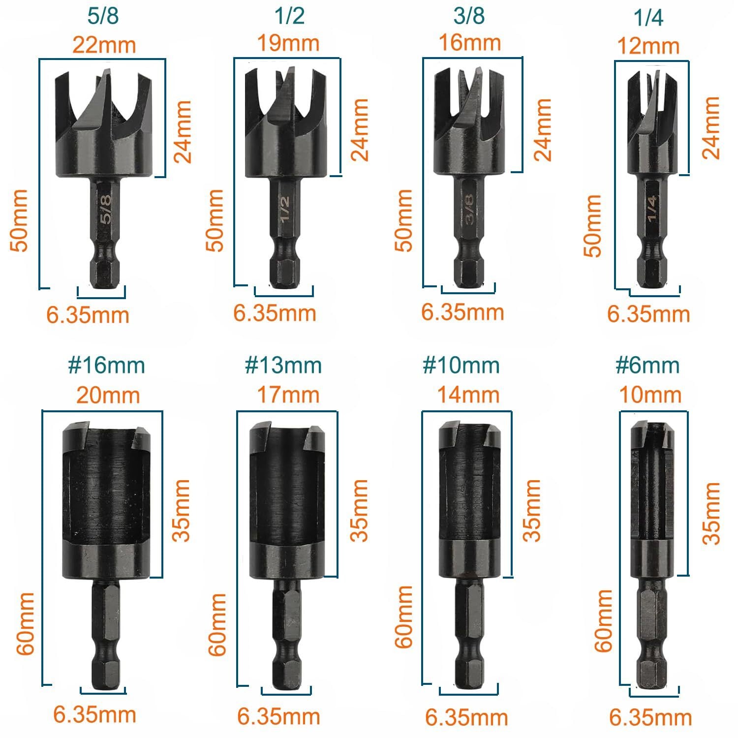 木ダボドリル 6mm 10mm 13mm 16mm 木工ドリル ダボ錐 6.35mm 六角軸 ホールソー 穴あけビット 炭素鋼 四歯面取りカッター 切削工具 木工用