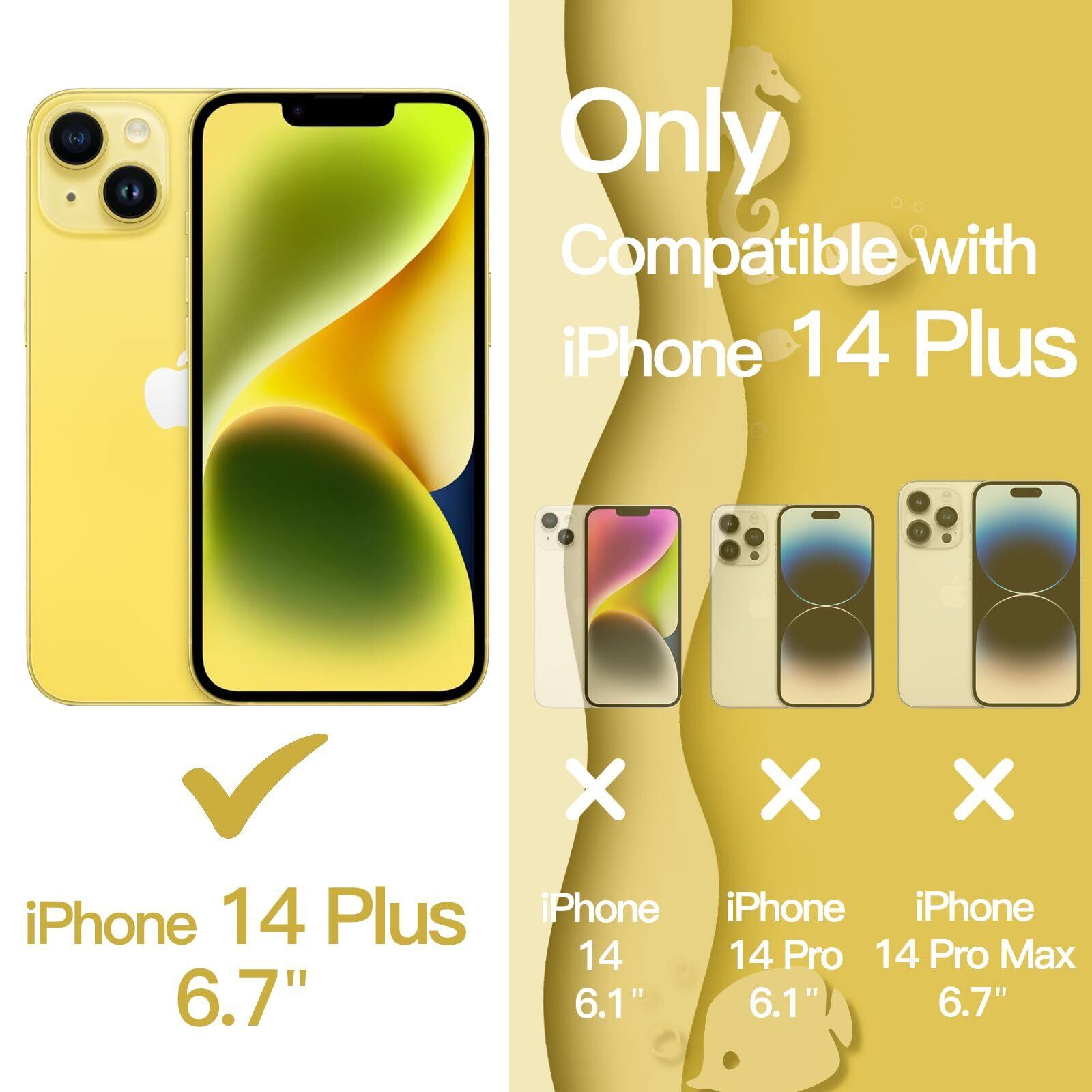 [互換性] iPhone 14 Plus 6.7インチ専用に設計されています。購入する前に携帯電話のモデルを再確認してください。さらに、黄ばみ防止の背面は超透明で、携帯電話の絶妙なロゴを美しく見せます