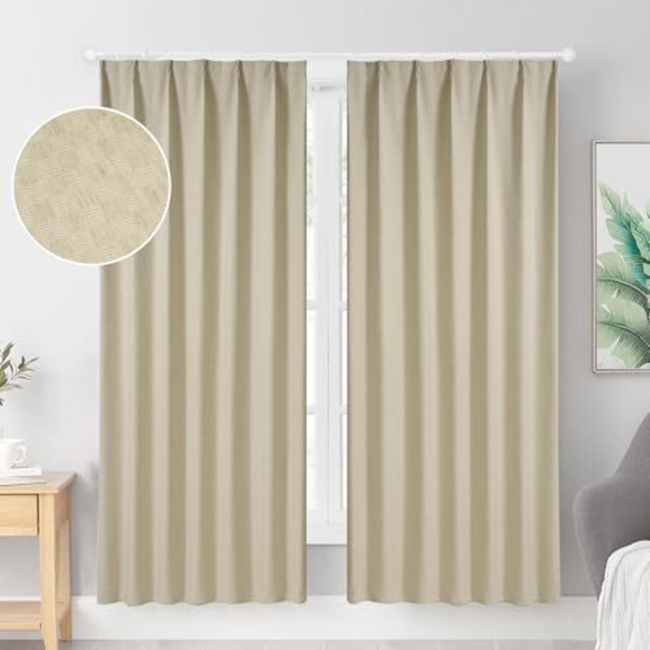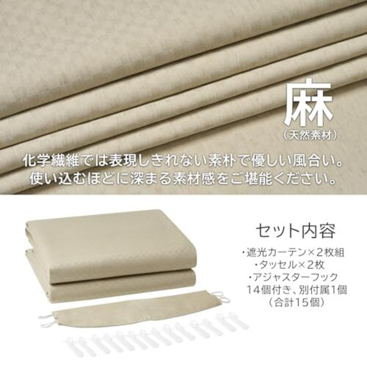 ◆【生地について】100%ポリエステル、リネンの風合いを生かしたカーテン。濃淡のムラを出したカラーリングがカーテンに深みを与え、ナチュラル感、ヴィンテージ感をだしたデザインカーテンです。 裏側にアクリルコーティングを施し、光を完全にシャットアウトした完全遮光生地で、通常のカーテンより遮熱性も高く、防音性もあります。
