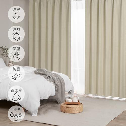◆【断熱性】遮光カーテンは生地が高密度のため、熱や冷気を通しにくいことも大きなメリットです。夏はお部屋の室温上昇を、冬は室温低下を防ぎ、冷暖房効率がアップします。通常のカーテンよりも窓際の空気を遮断する力がとても強いので、冷暖房効率が上がり、省エネに役立ちます。