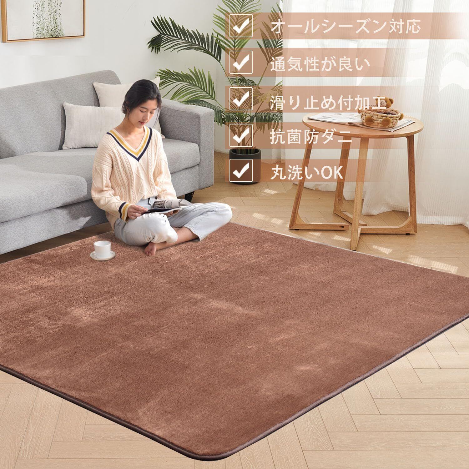 【通気性が良い】この洗えるラグの内側の素材は、通常のポリウレタンよりも通気性と透水性に優れています、ラグマット3畳ウレタン厚約5mm、暑い夏に座っても蒸れない、通気性優れて。ご家庭で洗濯もでもらぐまっと3畳、乾燥時間が短いのも特徴です。