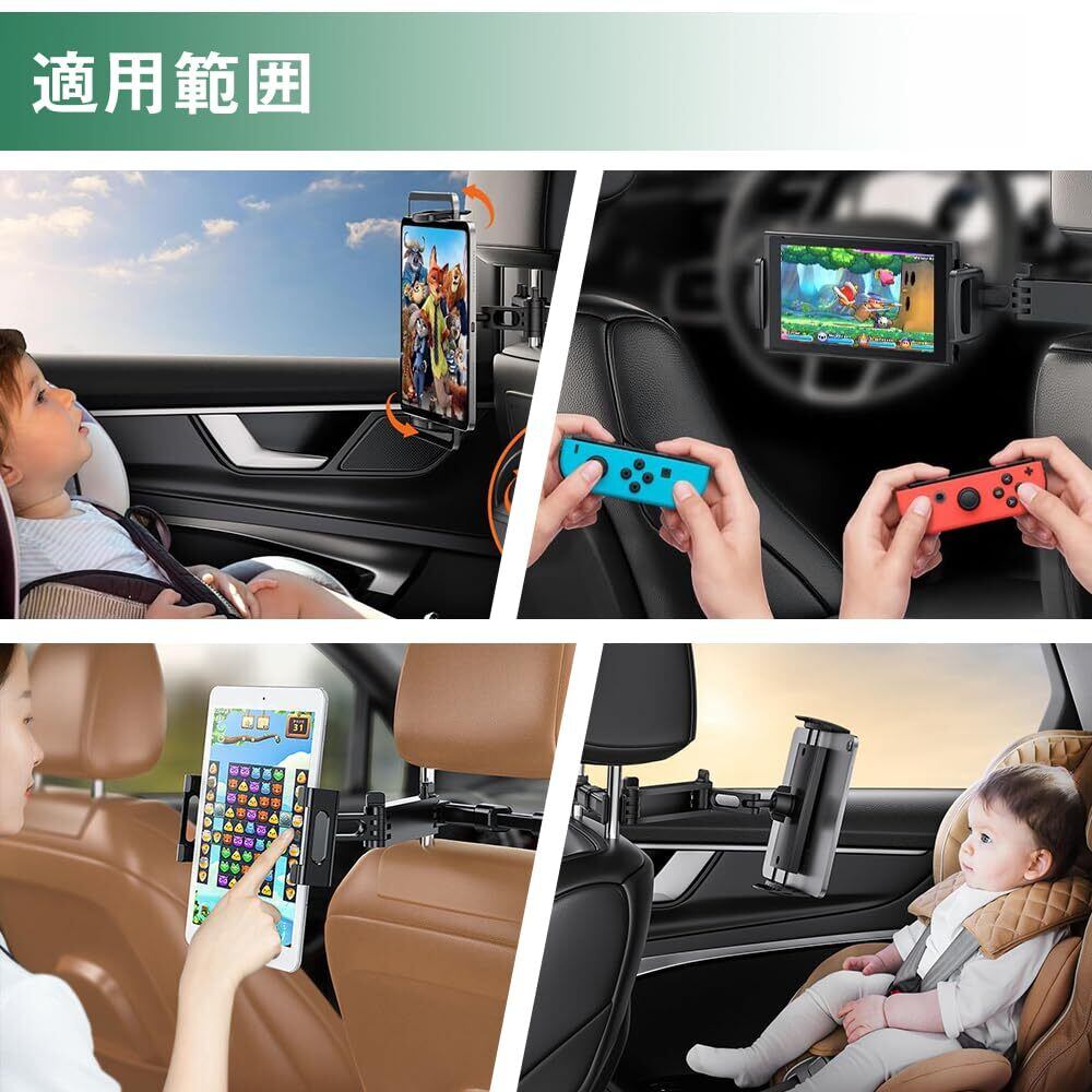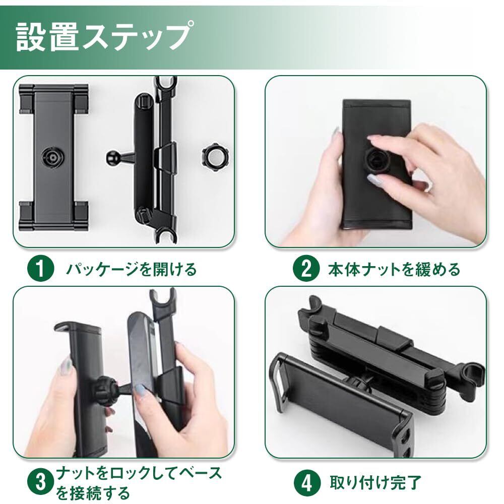 工具不要です、二点式固定車載用ホルダーは車内に助手席のベッドレストに引っ掛けて1秒固定するだけ本体を装着固定できます。 突っ張り式なので僅か数秒で簡単に取り付けることができます。