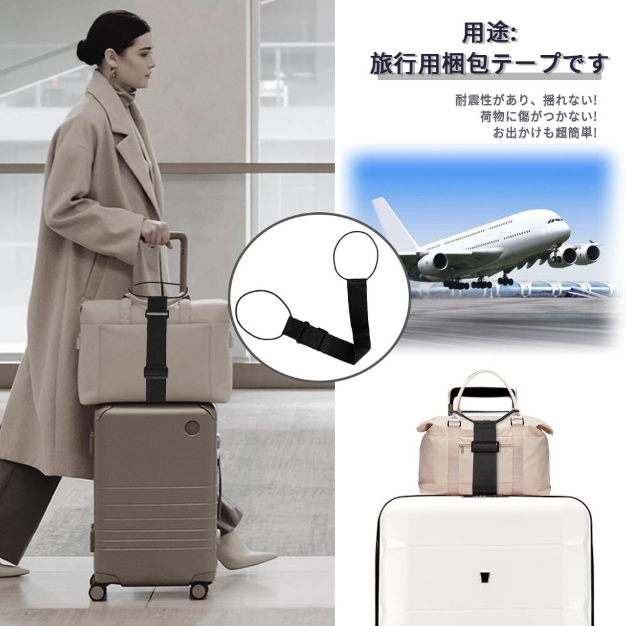 旅行便利グッズ バックルストラップ 固定ストラップ ラゲッジストラップ ラゲッジストラップ バッグ バックルストラップ ラゲッジストラップ 滑り止め 軽量 便利グッズ ブラック(1個)
