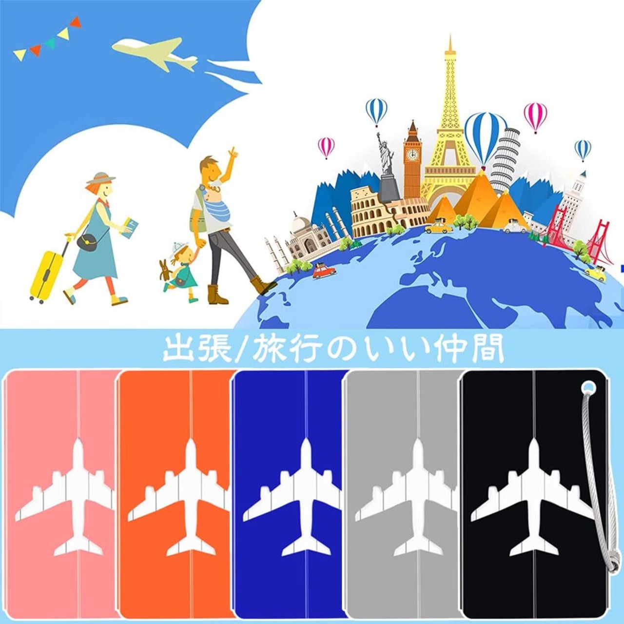 ネームタグ 荷物タグ バッグ用ネームタグ 5個セット カード 名前入れ ラゲージタグ トラベルネームタグ 金属IDタグ スーツケースタグ 軽量 紛失防止 出張用タグ 手荷物識別子 飛行機パターン (銀色/黒/青/オレンジ色/ピンク)