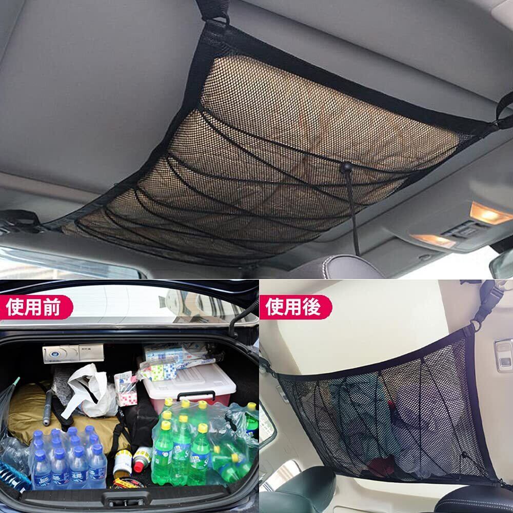 1.車内天井収納ネットの改良版:荷物固定ネットは、高品質のメッシュ素材で作られ、頑丈で耐久性があり、長寿命です。軽い荷物の収納を目的とします。収納できるので快適なドライブを楽しめます。