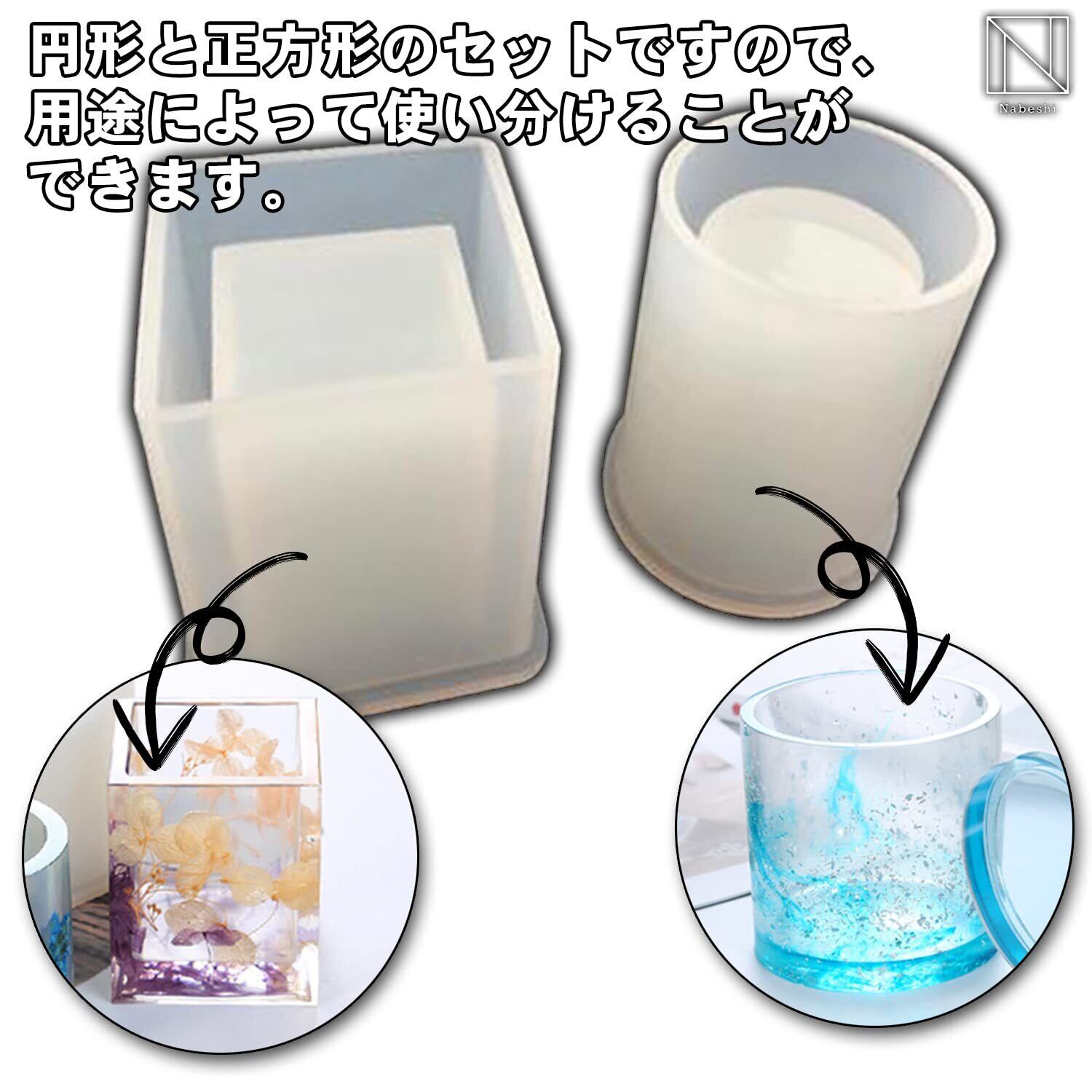 [NABESHI] 円柱 正方形 2個セット 四角 丸 レジン ネックレス ピアス アクセサリー シリコンモールド UVレジン 型 抜き型 (丸と四角)