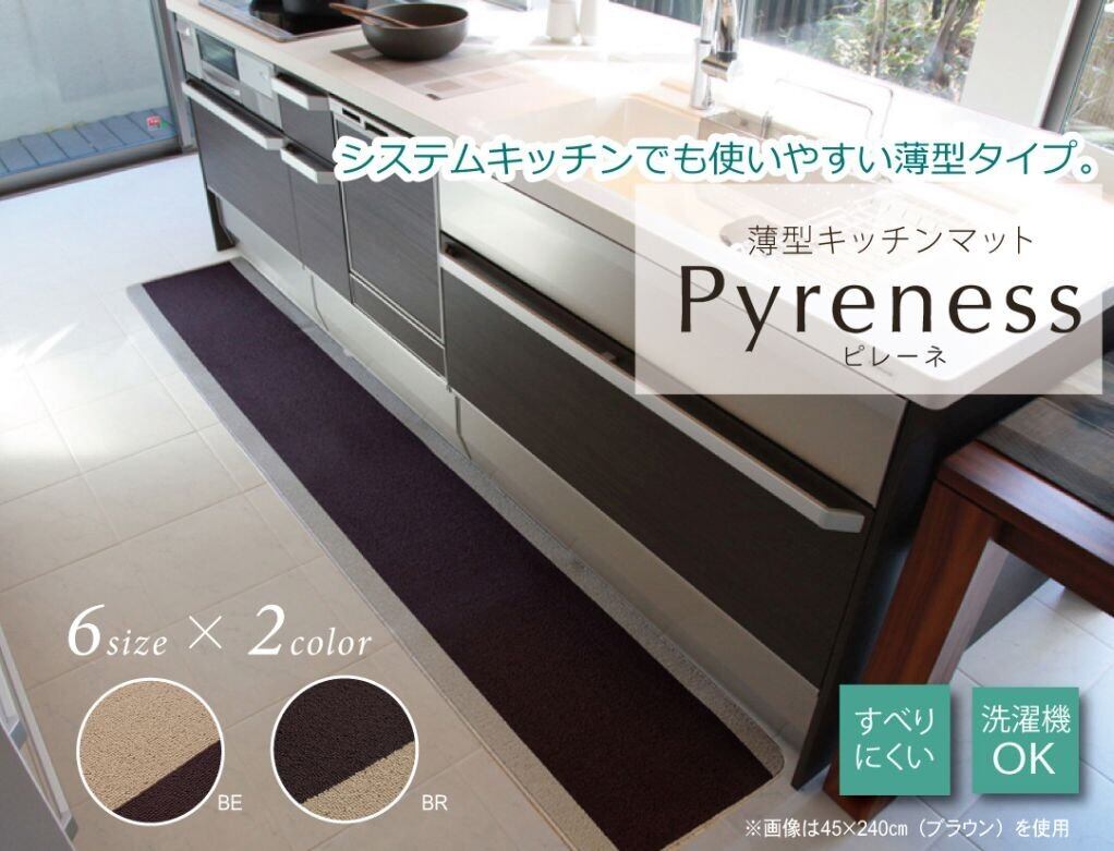 イケヒコ キッチンマット ピレーネ ベージュ 約44×120cm 滑りにくい 洗える シンプル #2024910