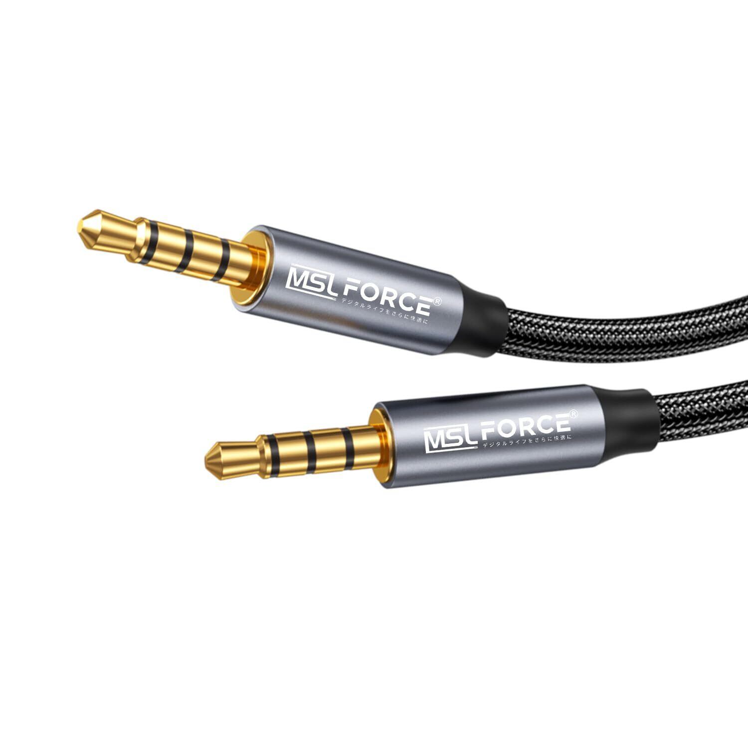 安心の日本企業 オーディオケーブル 1M/2M/3M 3.5mm 4極/TRRS ヘッドホンケーブル 延長ケーブル イヤホン ヘッドホン スマホ AUXケーブル AUX ステレオケーブル オス-オス 24K金メッキ コネクター aux-m2m(オス to オス, 1個, 1m)