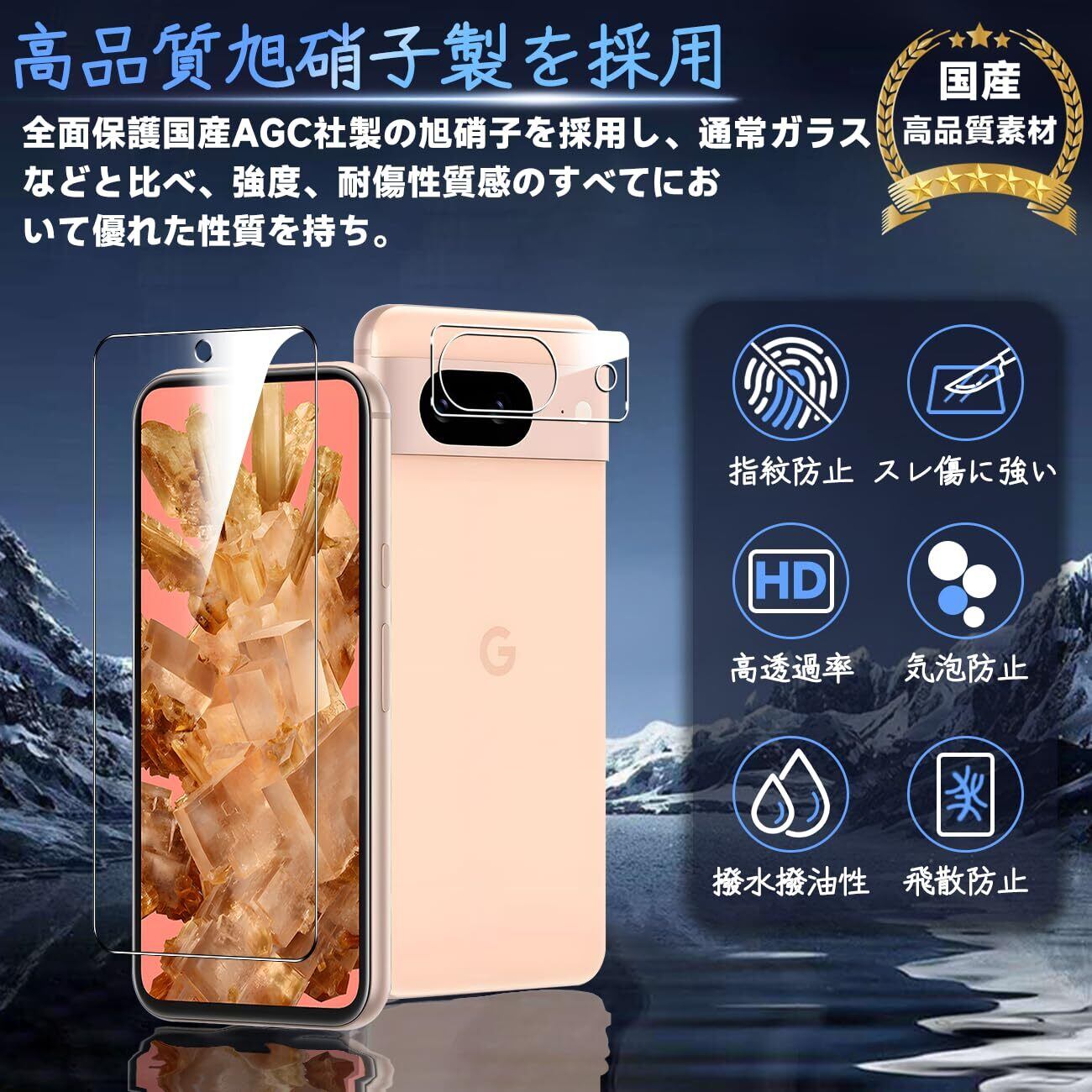 対応 Google Pixel 8A ガラスフィルム Pixel 8 A ガイド枠付き 指紋防止 【2* フィルム + 2* レンズ保護フィルム+ 1*ガイド枠付き+1*取り除き発泡板】国産旭硝子材質 ピクセル8A 薄型 強化ガラス Pixel8a 5G 保護フィルム 高光沢 液晶 ガラス ケース 9H硬度 厚さ0.26mm超薄型 高透過率 気泡なし ラウンドエッジ加工 簡単貼り付け 3D Touch対応