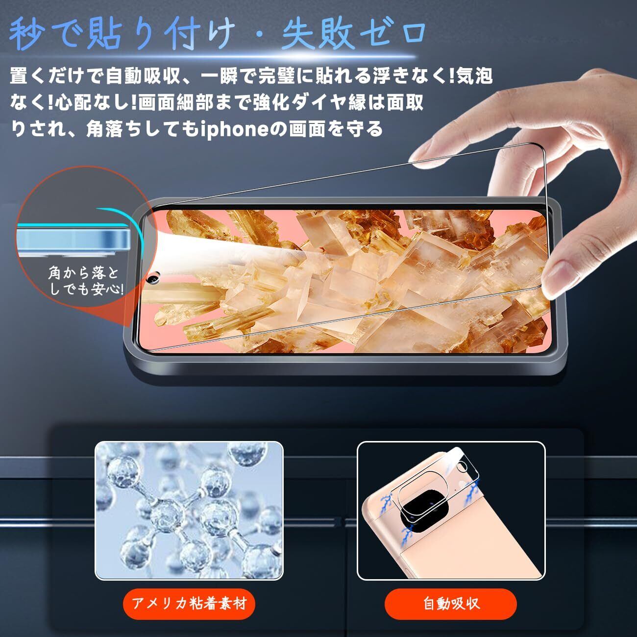 【専用設計·簡単に貼り付け】 本製品 Google Pixel 8A 専用液晶画面保護ガラスフィルムです。本商品は厳選した素材を採用して作られており、フィルムのシリコン自己吸着層があるので、スチールフィルムを携帯電話に合わせて軽く置くだけで、気泡が入らないように簡単に取り付けられます。(ポイント:フロントカメラのカメラ穴についてですが、ほこり・異物などの堆積を防止するため、ガラスフィルムにカメラ穴を開けていません。Seninhiのガラスフィルム 、透過率は99.9%なので、フロントカメラの正常使用に全く影響がありません。)*機種によってサイズが異なりますので、ご購入の場合に機種をよく確認してください。