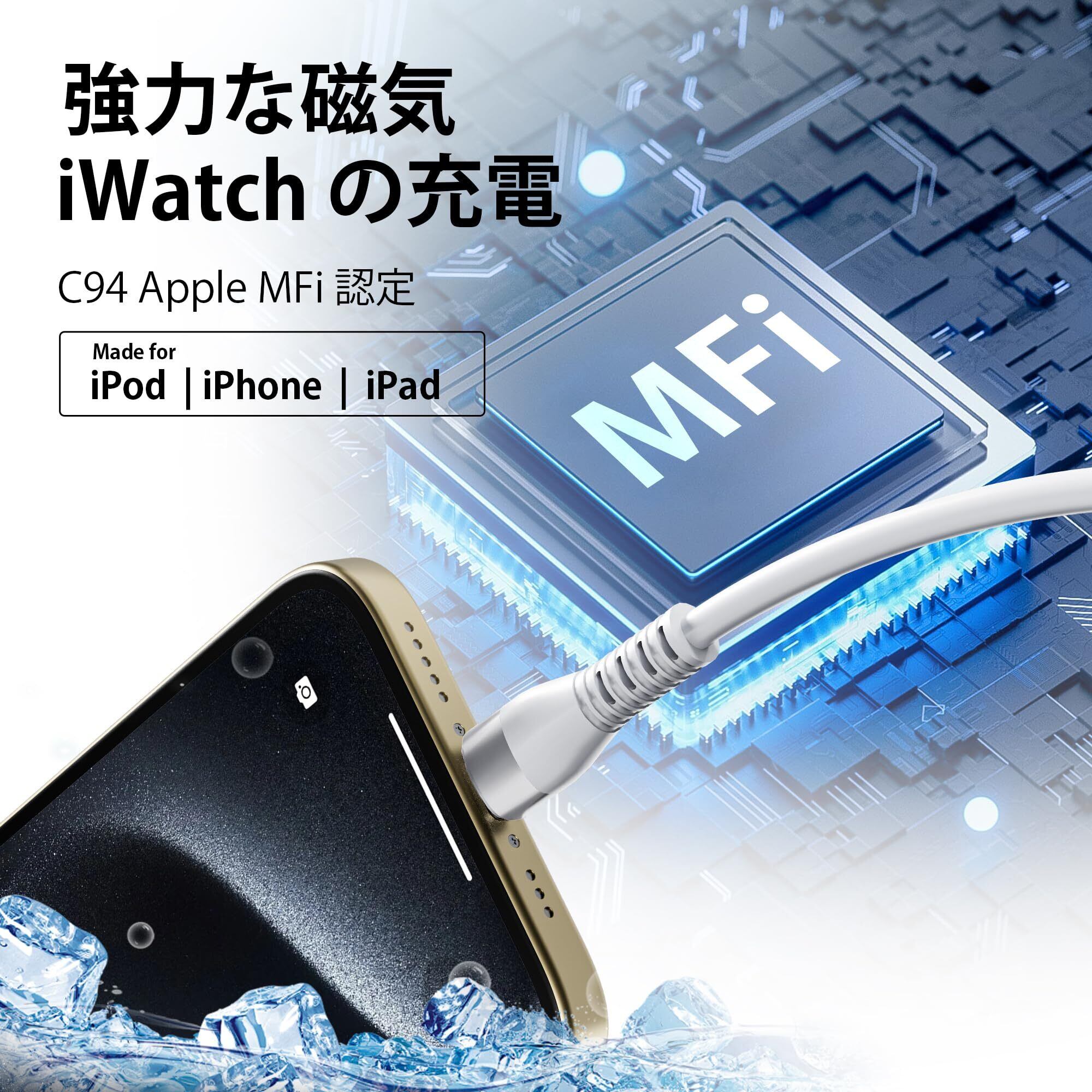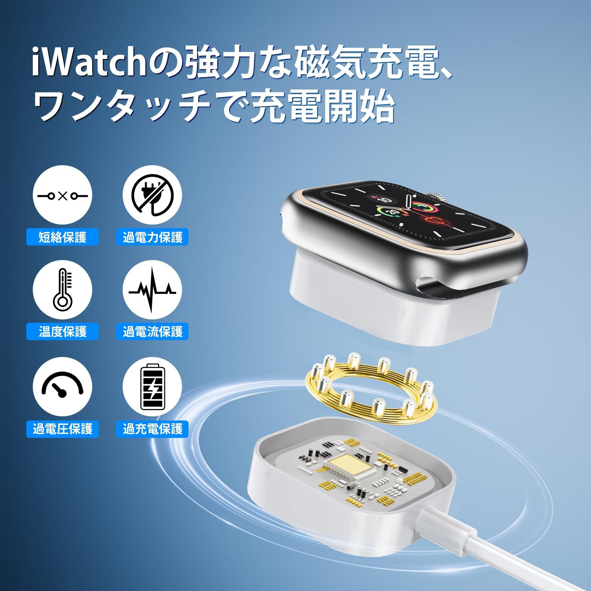 磁気 iWatch 充電コード & MFi 認定: コネクタをapplewatchの背面に近づけるだけで、自動的に所定の位置にカチッとはまり、時計を安定して充電できます。ウォッチ充電ケーブルは最新のウォッチワイヤレス充電チップを使用しており、過電流、過電圧、短絡、過熱保護などの保護機能が組み込まれており、Apple Watchを危害から保護します。 MFi 認定済み、エラー メッセージは表示されず、iOS との 100% の互換性を保証します。時計を単独で充電する場合は、最大出力20Wの充電器を使用することをお勧めします。