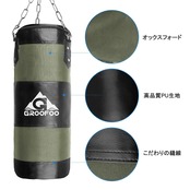 【安全・品質】高品質のキャンバスとPUレザーを使用し、ほんのり弾力があるパンチバッグは手を保護します。縫い目もしっかりしていて、底の部分には重量に耐えられるよう補強ベルトを用いています。武術、空手、ボクシング等が好きな方にオススメです。