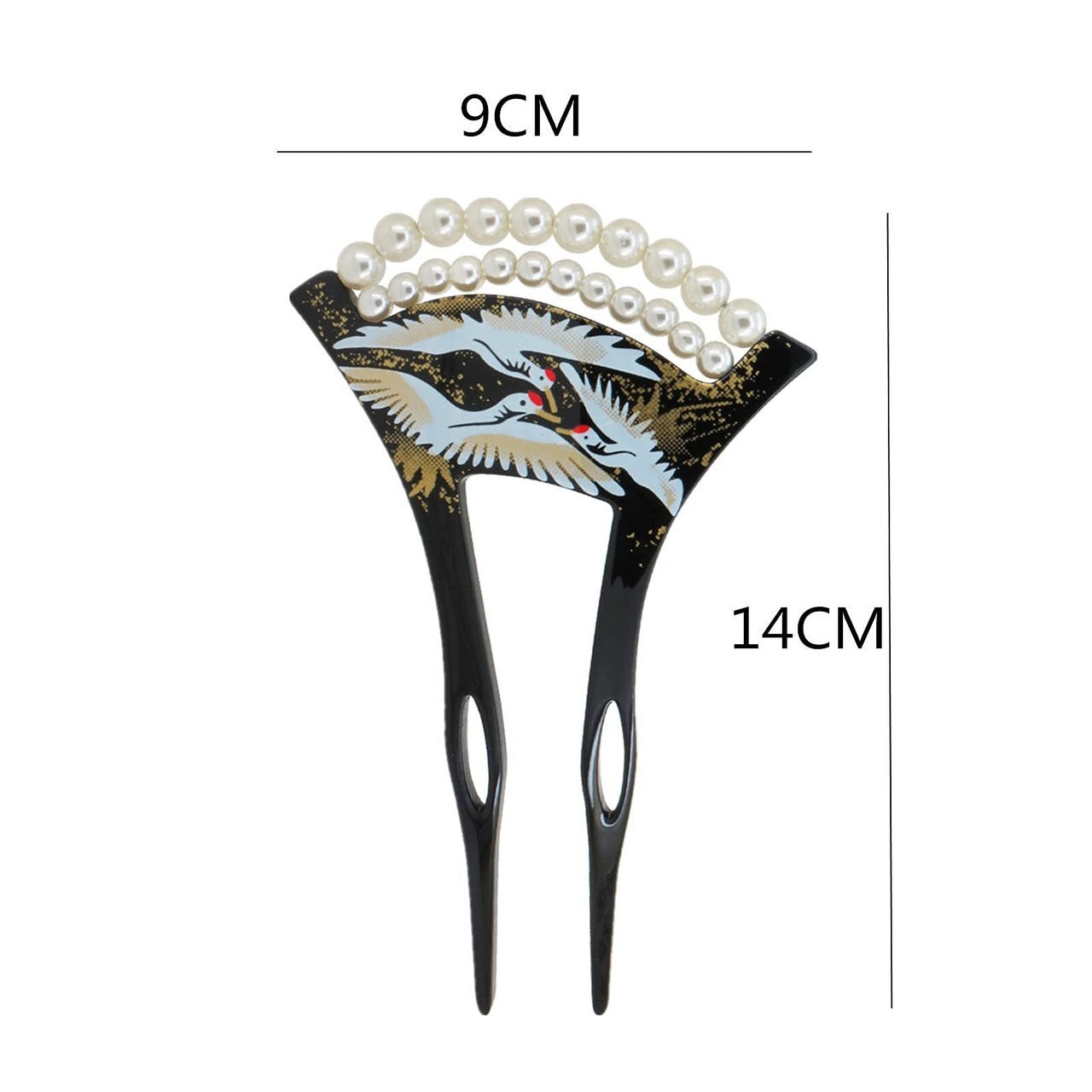 鶴の柄とパールがあしらわれたU型かんざしです。派手すぎず地味すぎず、上品でエレガントな雰囲気を演出してくれます。