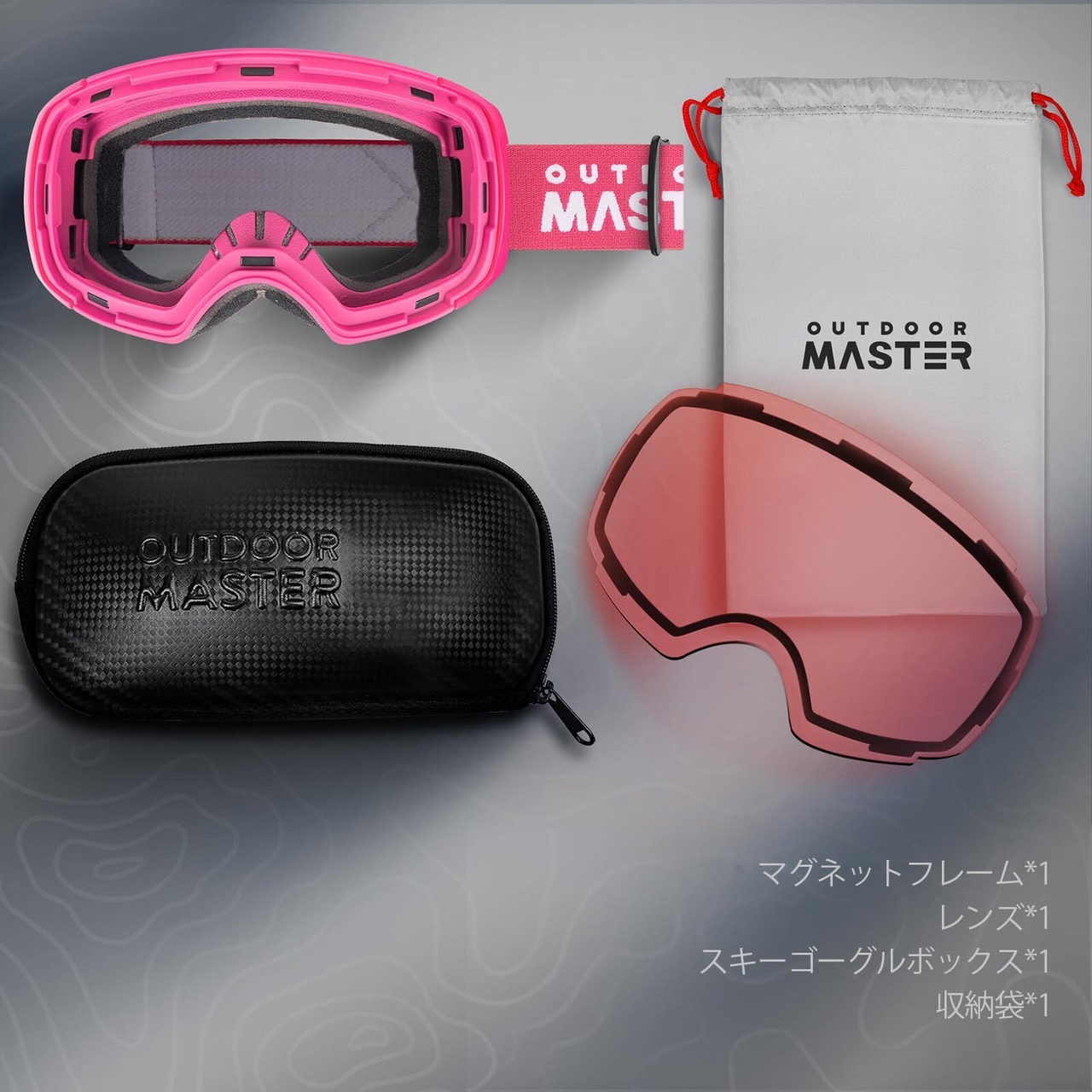 [OutdoorMaster] スキーゴーグル 両層磁気レンズ 【マグネット式・レンズ交換可能】 ダブルレンズ 180°広視野 スノーゴーグル 曇り止め メガネ対応 OTG UV紫外線カット スノボートゴーグル スポーツ用ゴーグル 全天候対応 防風防塵防雪 防放射 スポーツ用ゴーグル 軽量と耐衝撃 収納ケース付き 山登り/スキー/アウトドアスポーツに全面適用 男女兼用