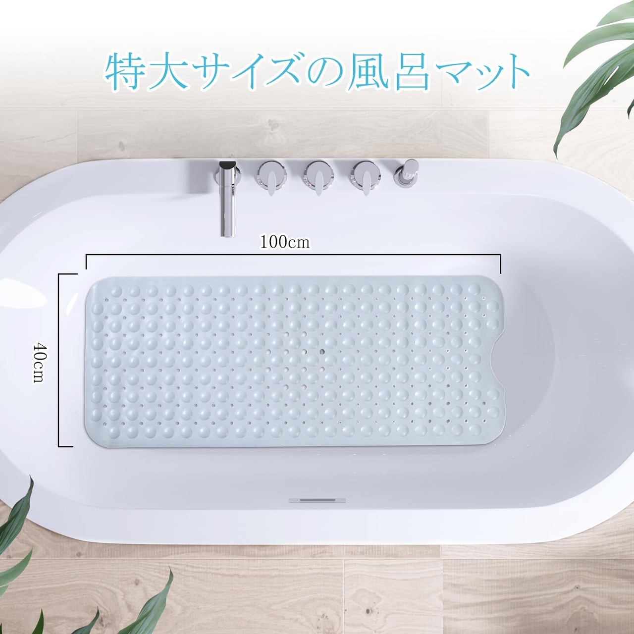 【高品質素材】浴槽マットのサイズは約40cm×100cmです。最新TPE素材で作られたバスマットはPVC(塩ビ)製品に比べると、軽くて柔らかい、特に人工的なニオイがしません。吸盤は優れた安定性を提供します。